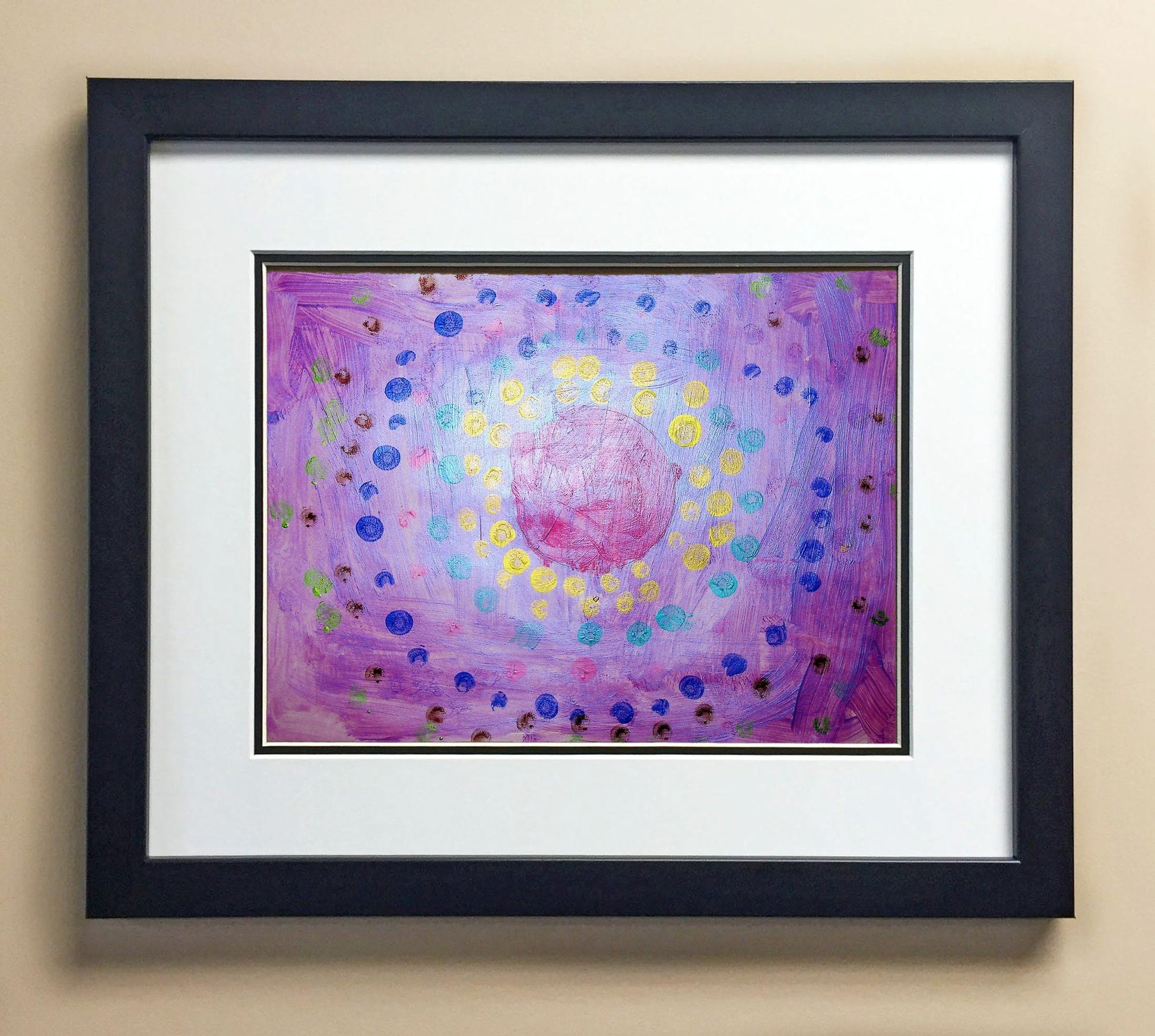Included with the purchase is the Students Artwork, Frame, double matboard, shatter proof plexiglass, and a ready to hang backerboard with turnbuttons