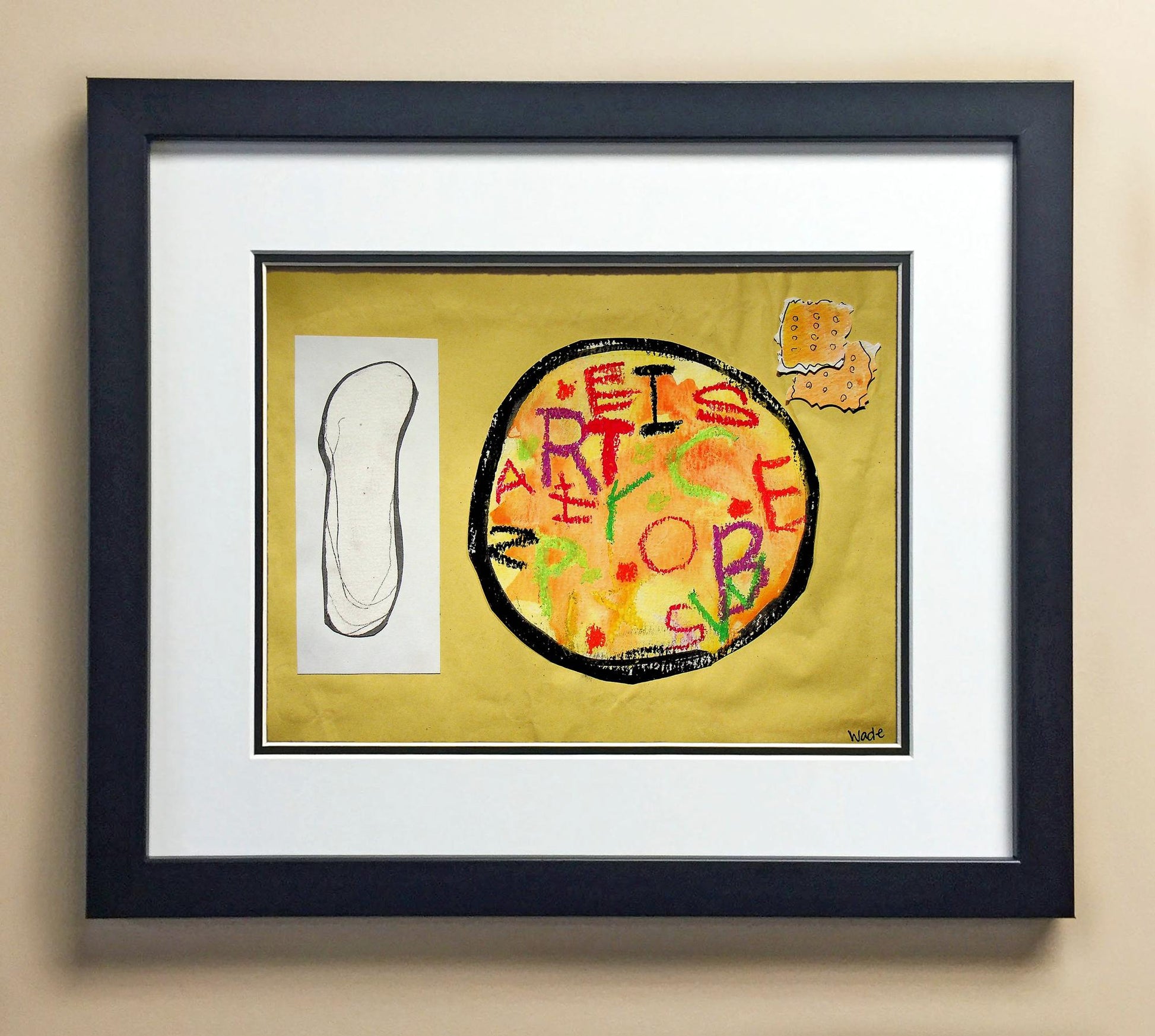 Included with the purchase is the Students Artwork, Frame, double matboard, shatter proof plexiglass, and a ready to hang backerboard with turnbuttons