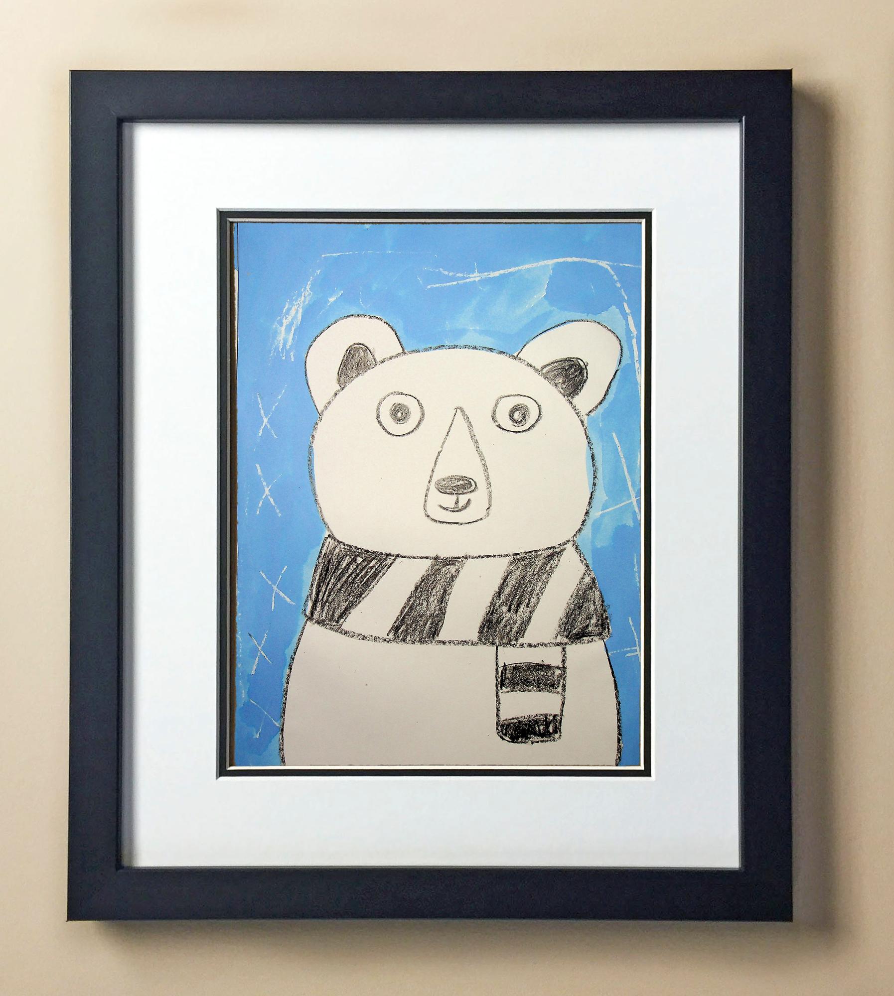 Included with the purchase is the Students Artwork, Frame, double matboard, shatter proof plexiglass, and a ready to hang backerboard with turnbuttons
