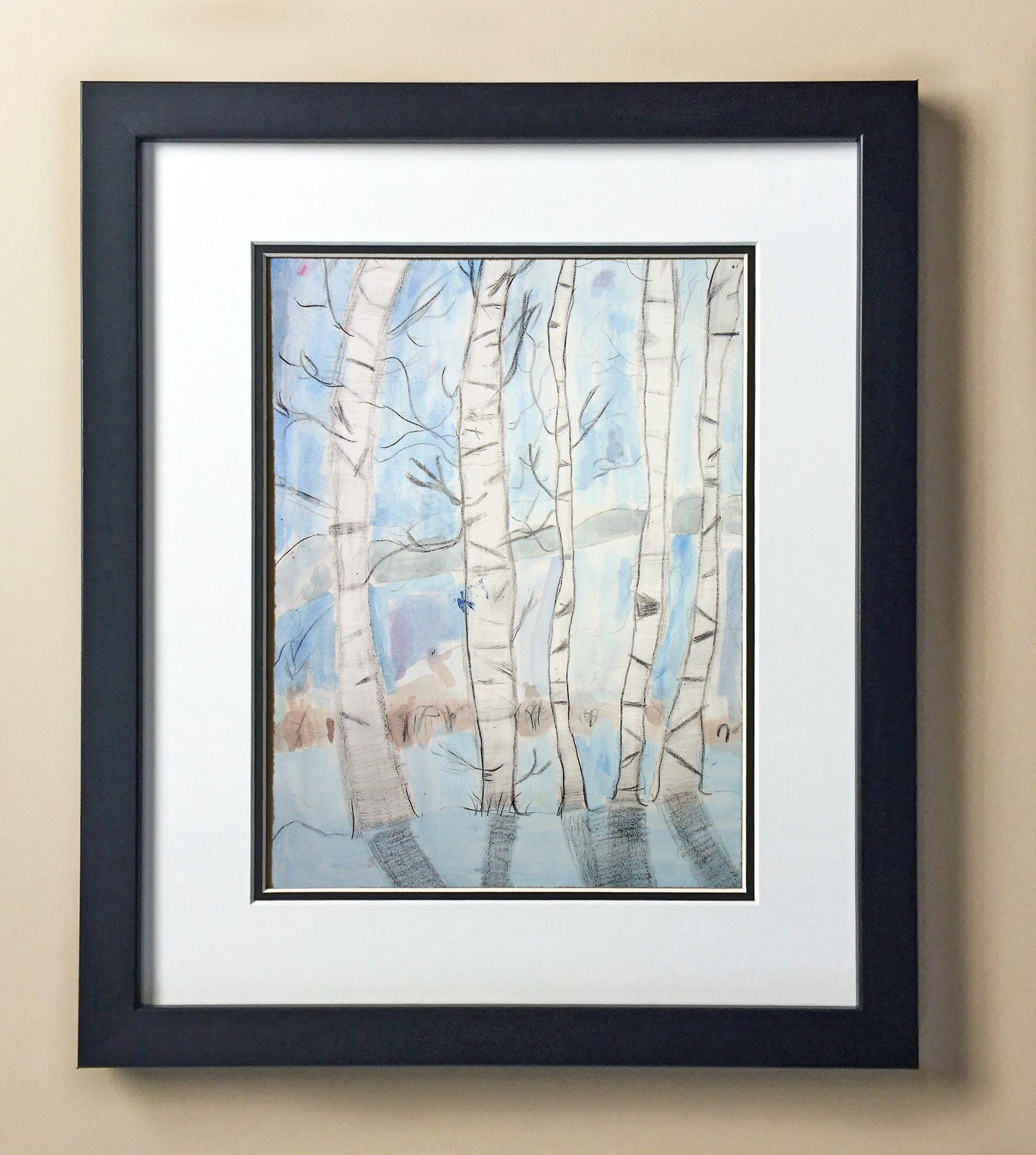 Included with the purchase is the Students Artwork, Frame, double matboard, shatter proof plexiglass, and a ready to hang backerboard with turnbuttons