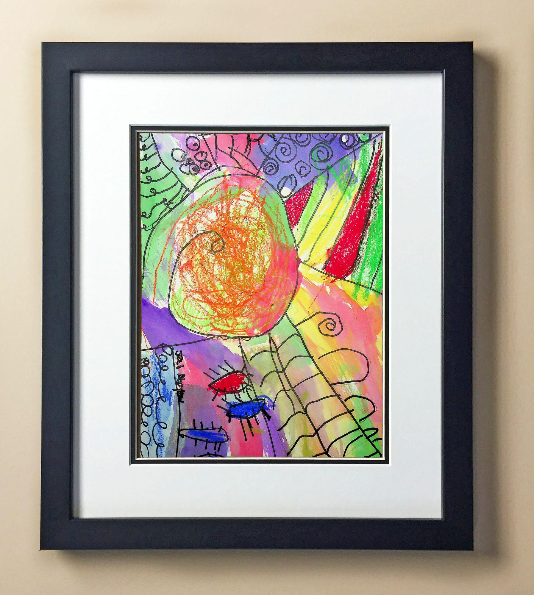 Included with the purchase is the Students Artwork, Frame, double matboard, shatter proof plexiglass, and a ready to hang backerboard with turnbuttons