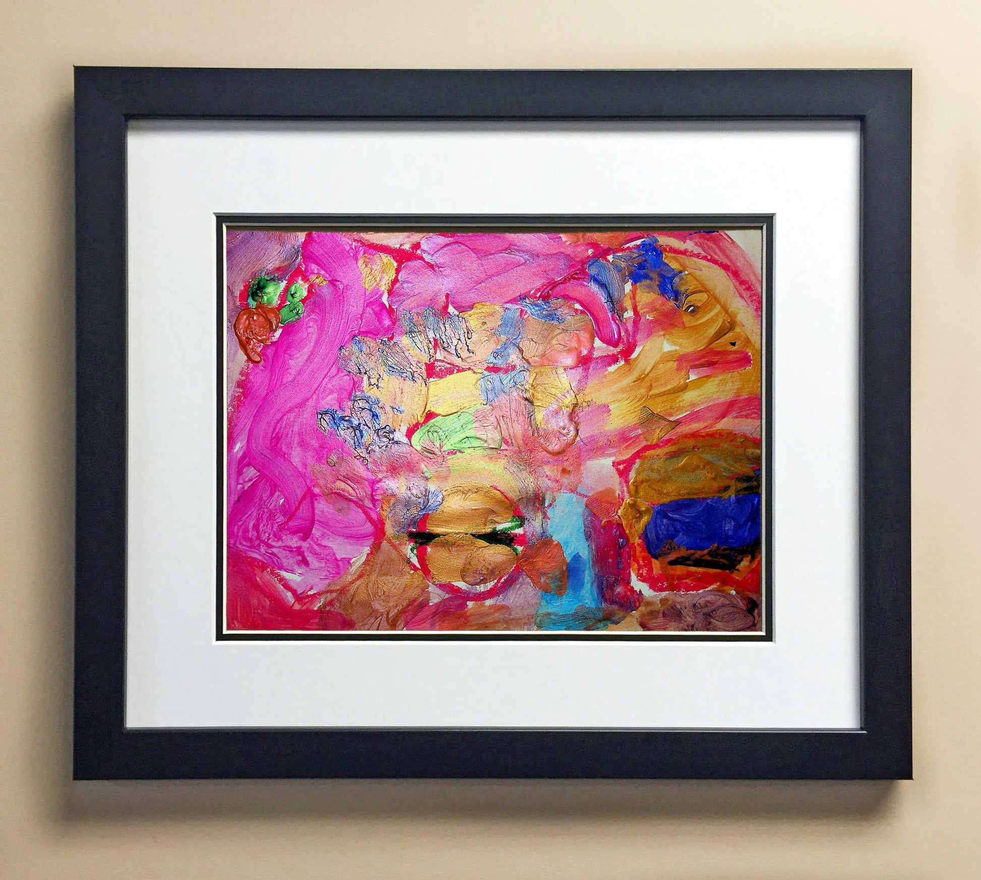 Included with the purchase is the Students Artwork, Frame, double matboard, shatter proof plexiglass, and a ready to hang backerboard with turnbuttons