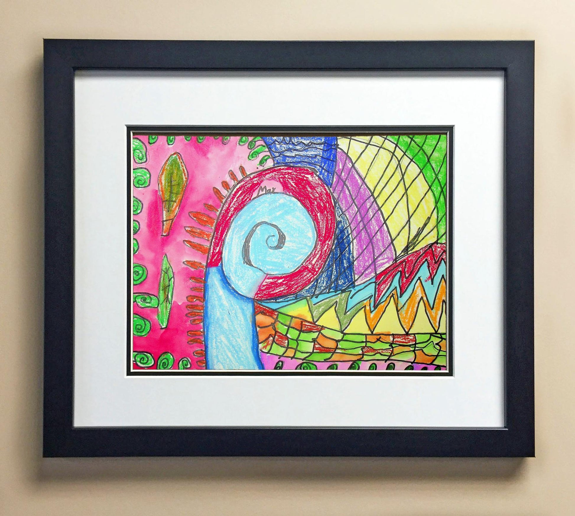 Included with the purchase is the Students Artwork, Frame, double matboard, shatter proof plexiglass, and a ready to hang backerboard with turnbuttons