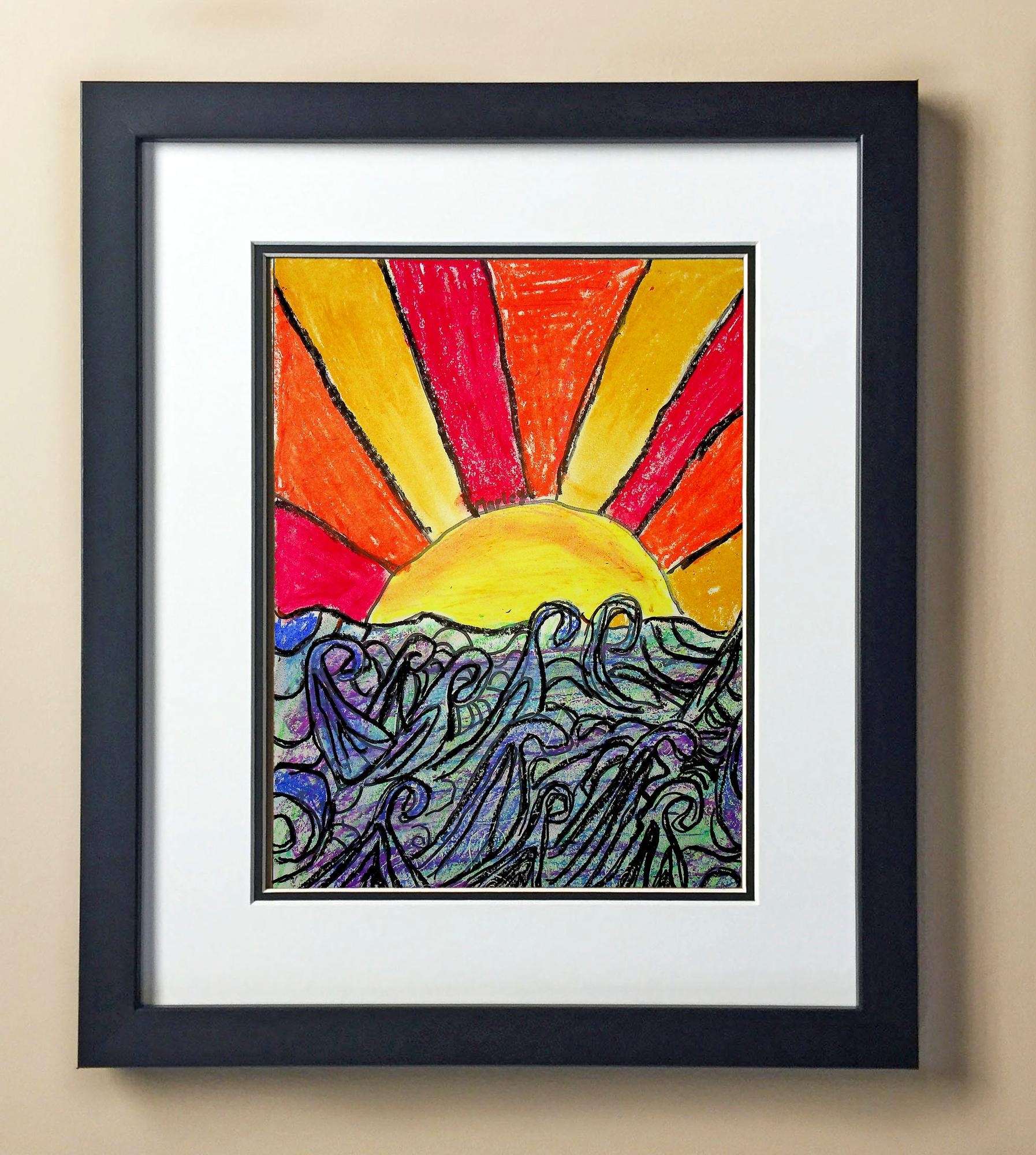 Included with the purchase is the Students Artwork, Frame, double matboard, shatter proof plexiglass, and a ready to hang backerboard with turnbuttons