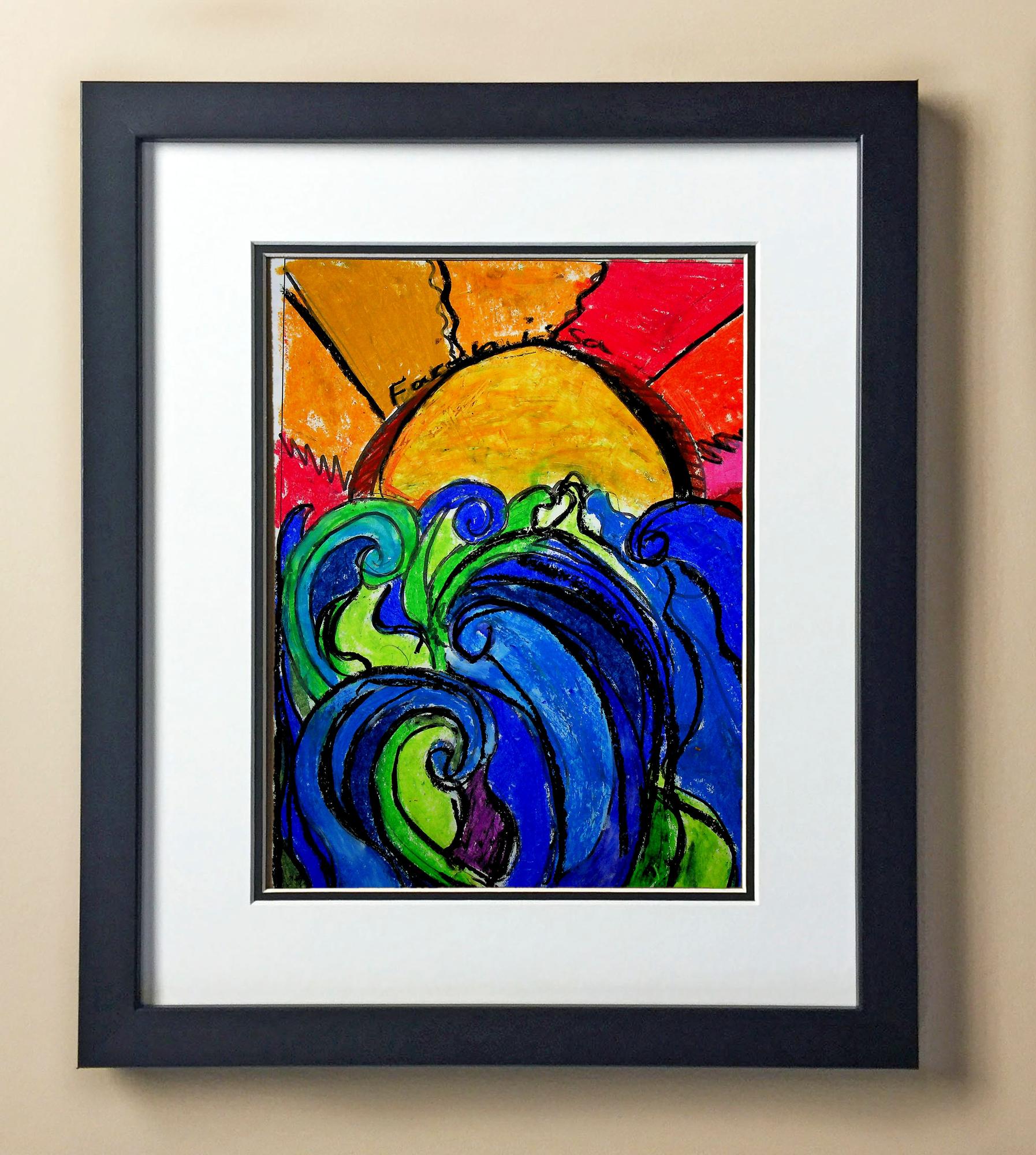 Included with the purchase is the Students Artwork, Frame, double matboard, shatter proof plexiglass, and a ready to hang backerboard with turnbuttons