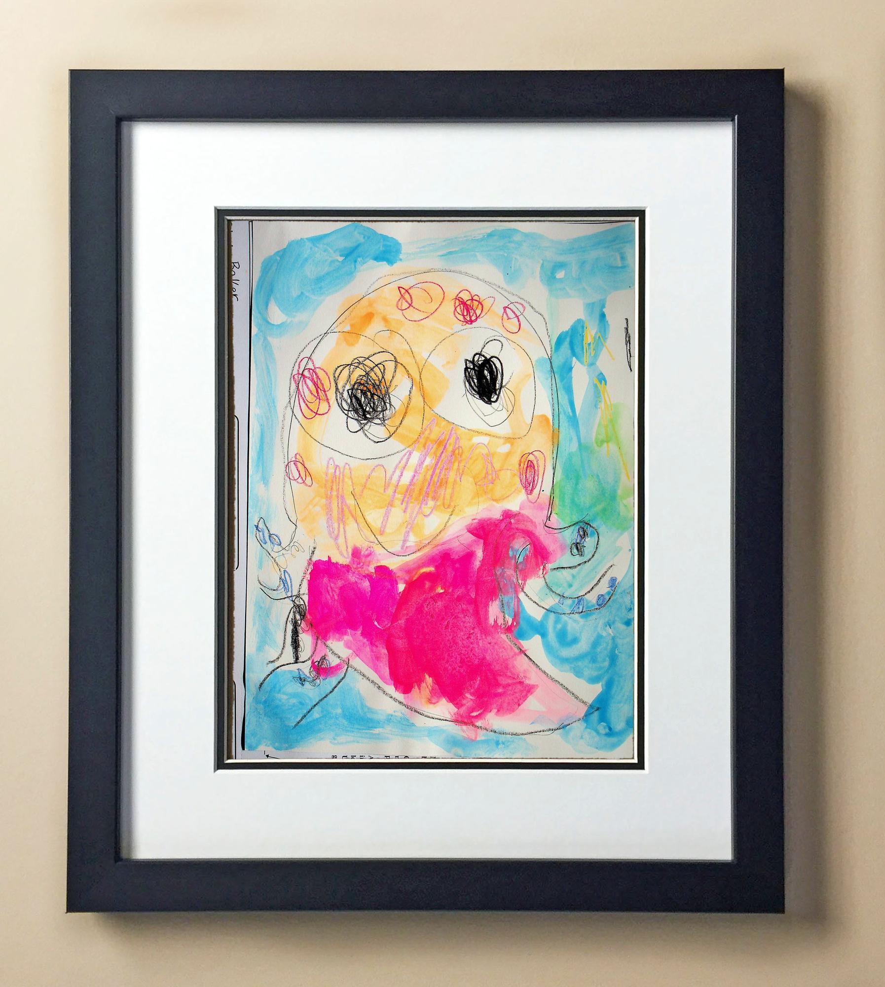 Included with the purchase is the Students Artwork, Frame, double matboard, shatter proof plexiglass, and a ready to hang backerboard with turnbuttons