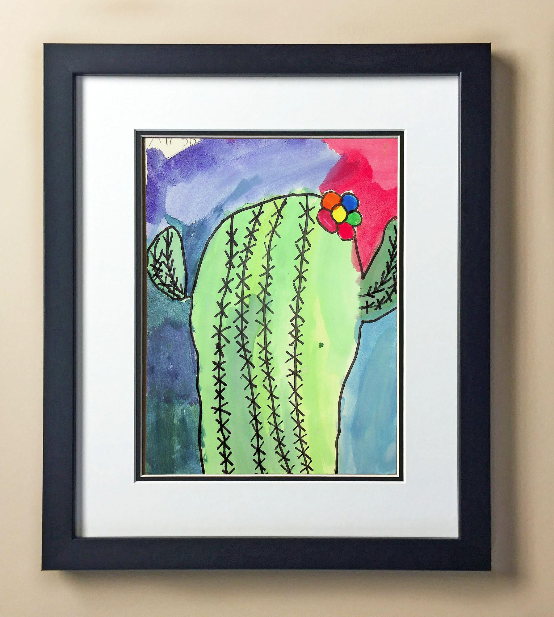 Included with the purchase is the Students Artwork, Frame, double matboard, shatter proof plexiglass, and a ready to hang backerboard with turnbuttons