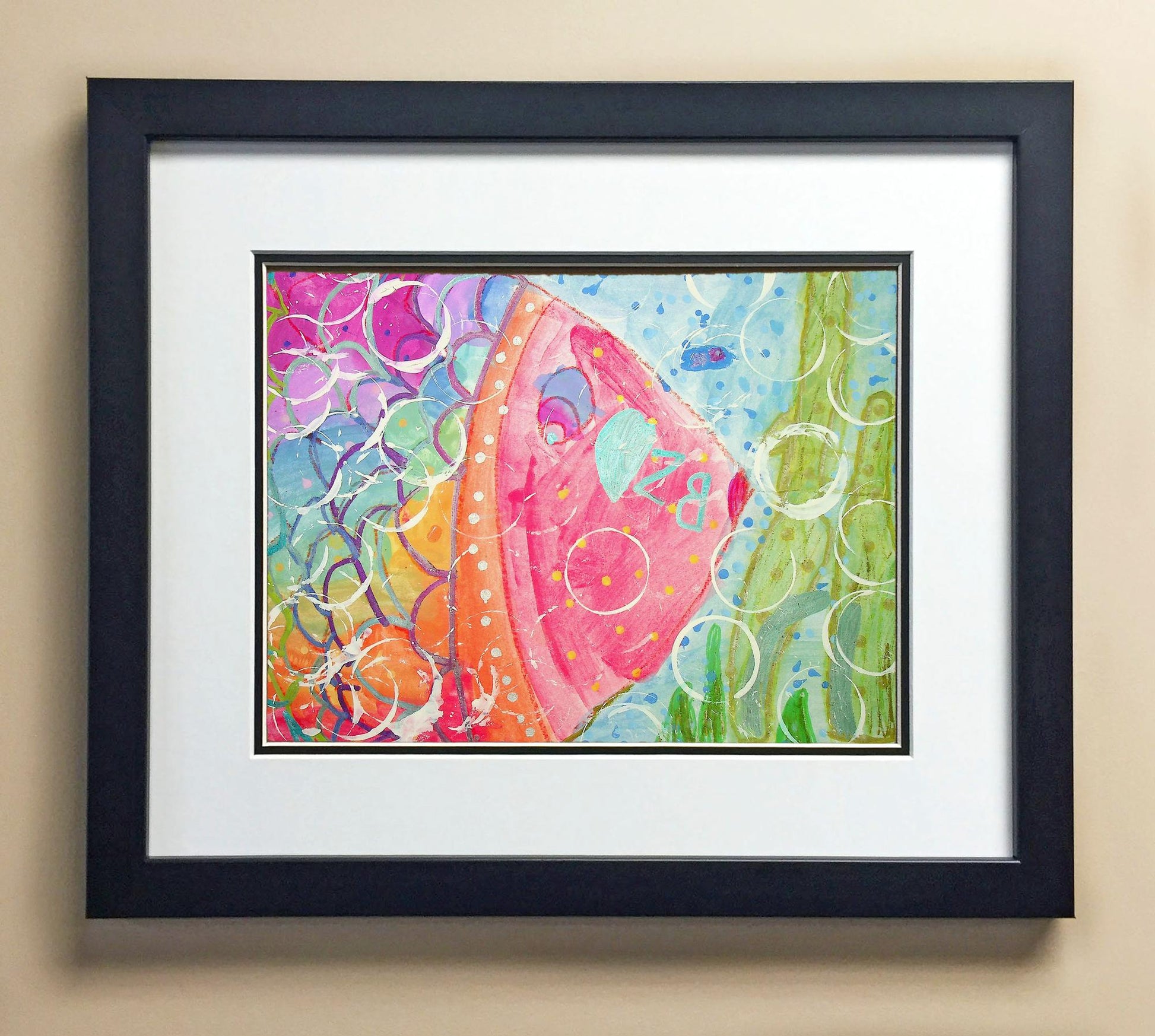 Included with the purchase is the Students Artwork, Frame, double matboard, shatter proof plexiglass, and a ready to hang backerboard with turnbuttons