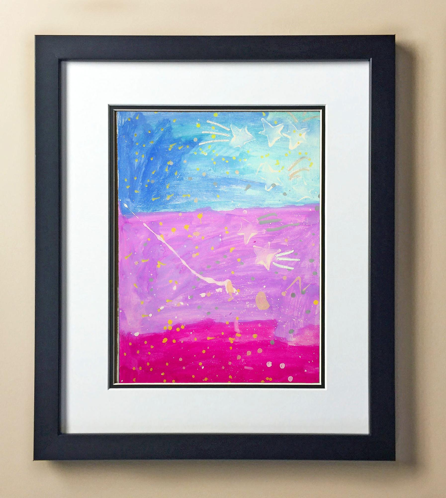Included with the purchase is the Students Artwork, Frame, double matboard, shatter proof plexiglass, and a ready to hang backerboard with turnbuttons
