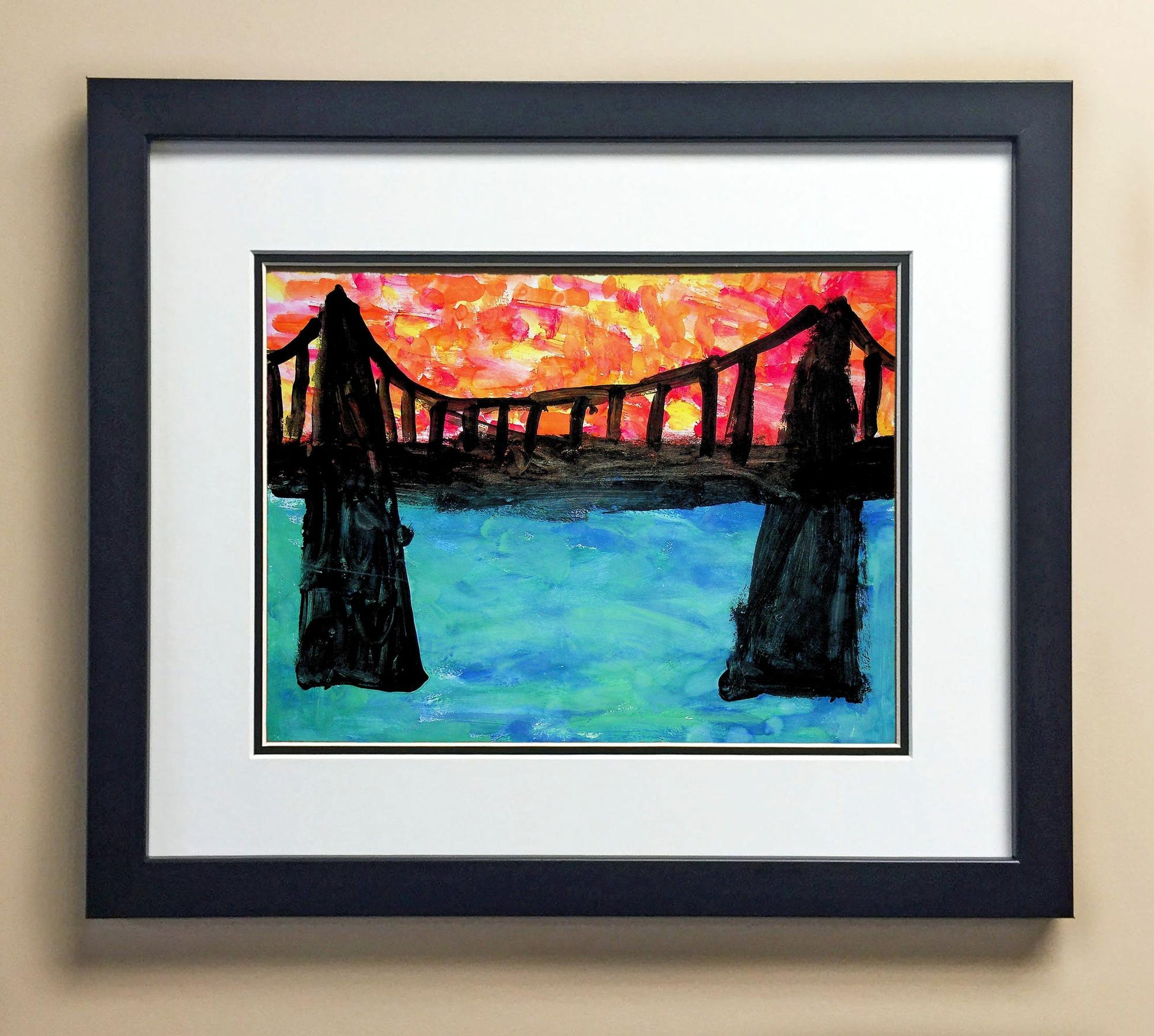 Included with the purchase is the Students Artwork, Frame, double matboard, shatter proof plexiglass, and a ready to hang backerboard with turnbuttons