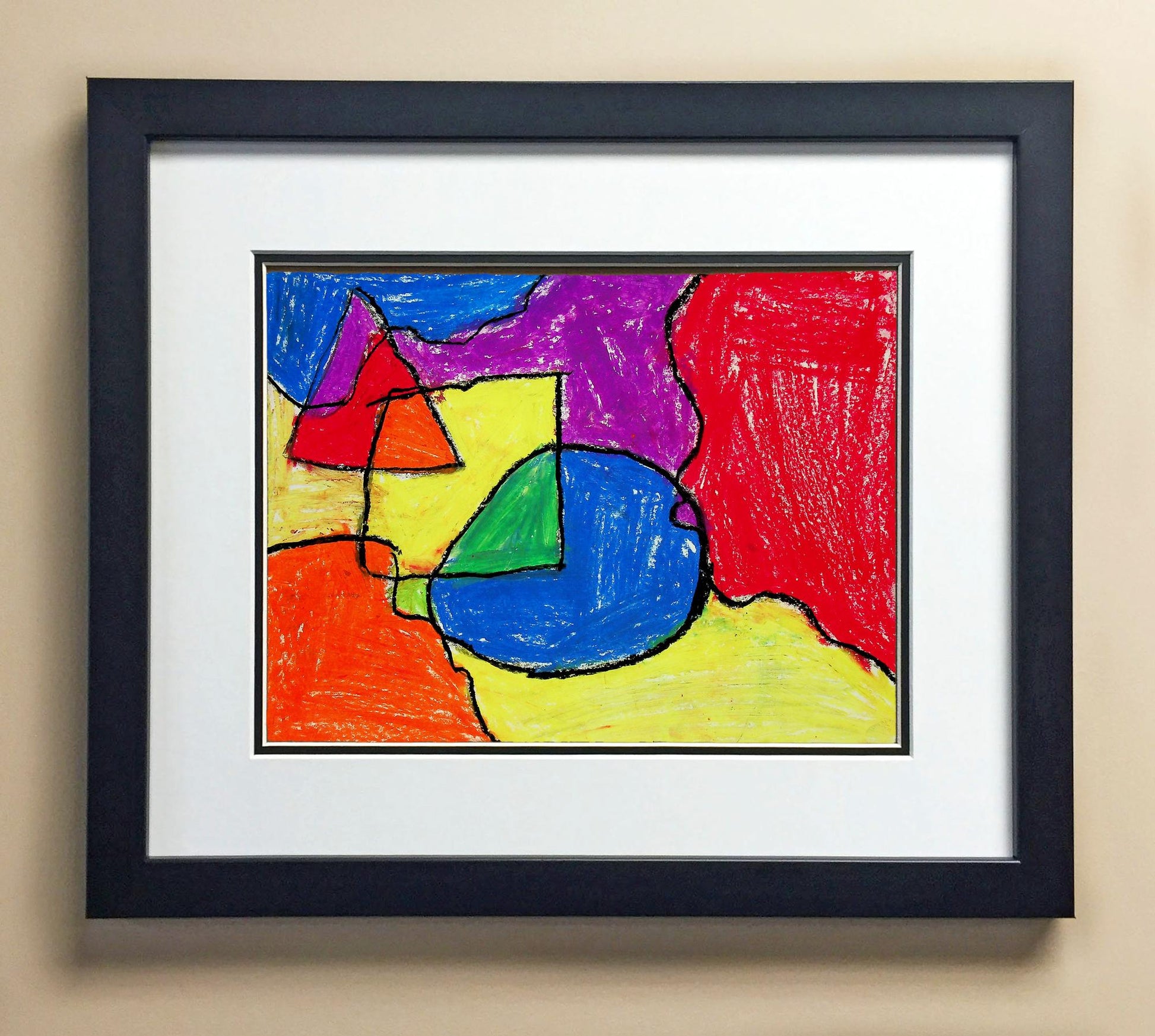 Included with the purchase is the Students Artwork, Frame, double matboard, shatter proof plexiglass, and a ready to hang backerboard with turnbuttons