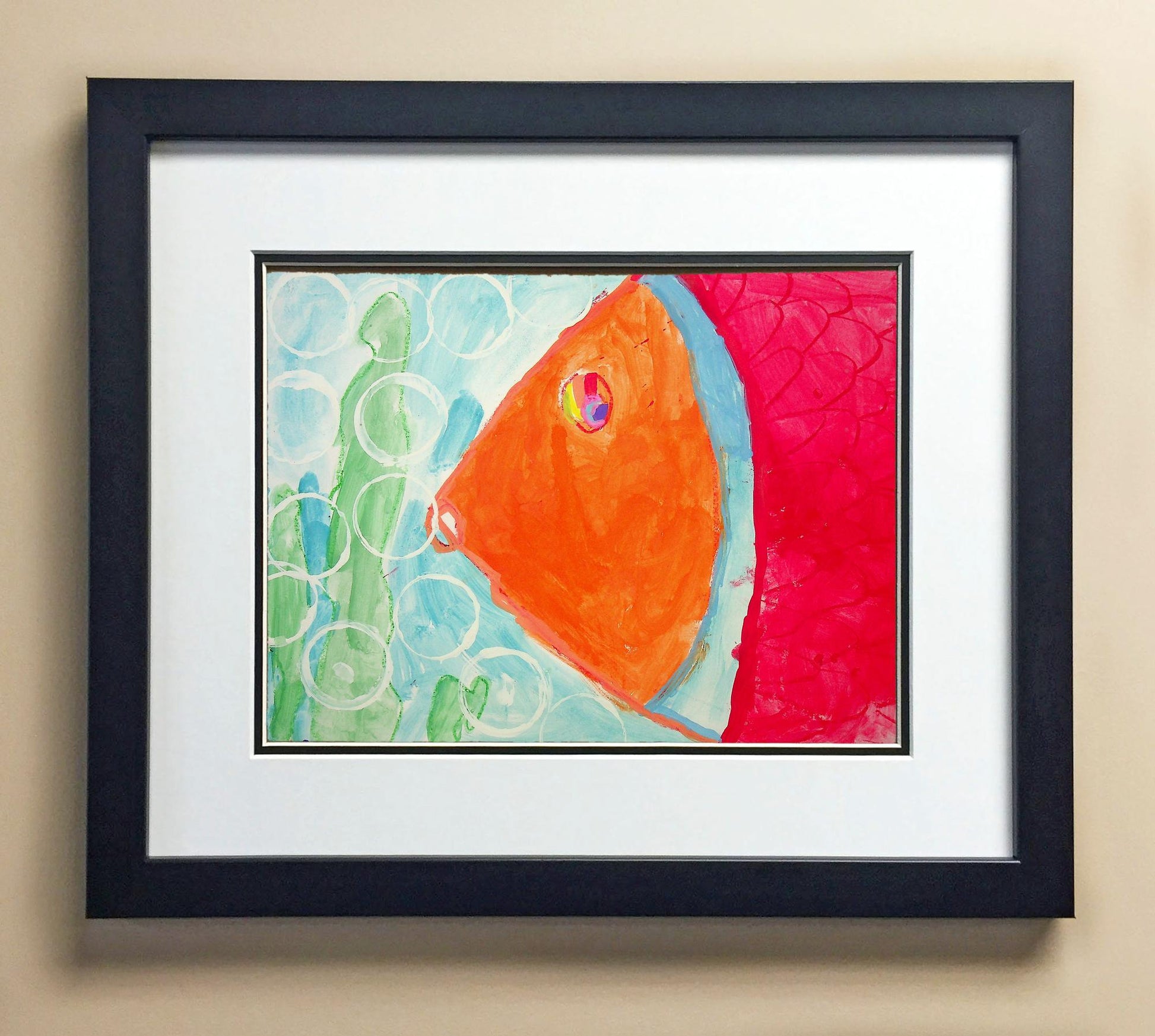 Included with the purchase is the Students Artwork, Frame, double matboard, shatter proof plexiglass, and a ready to hang backerboard with turnbuttons