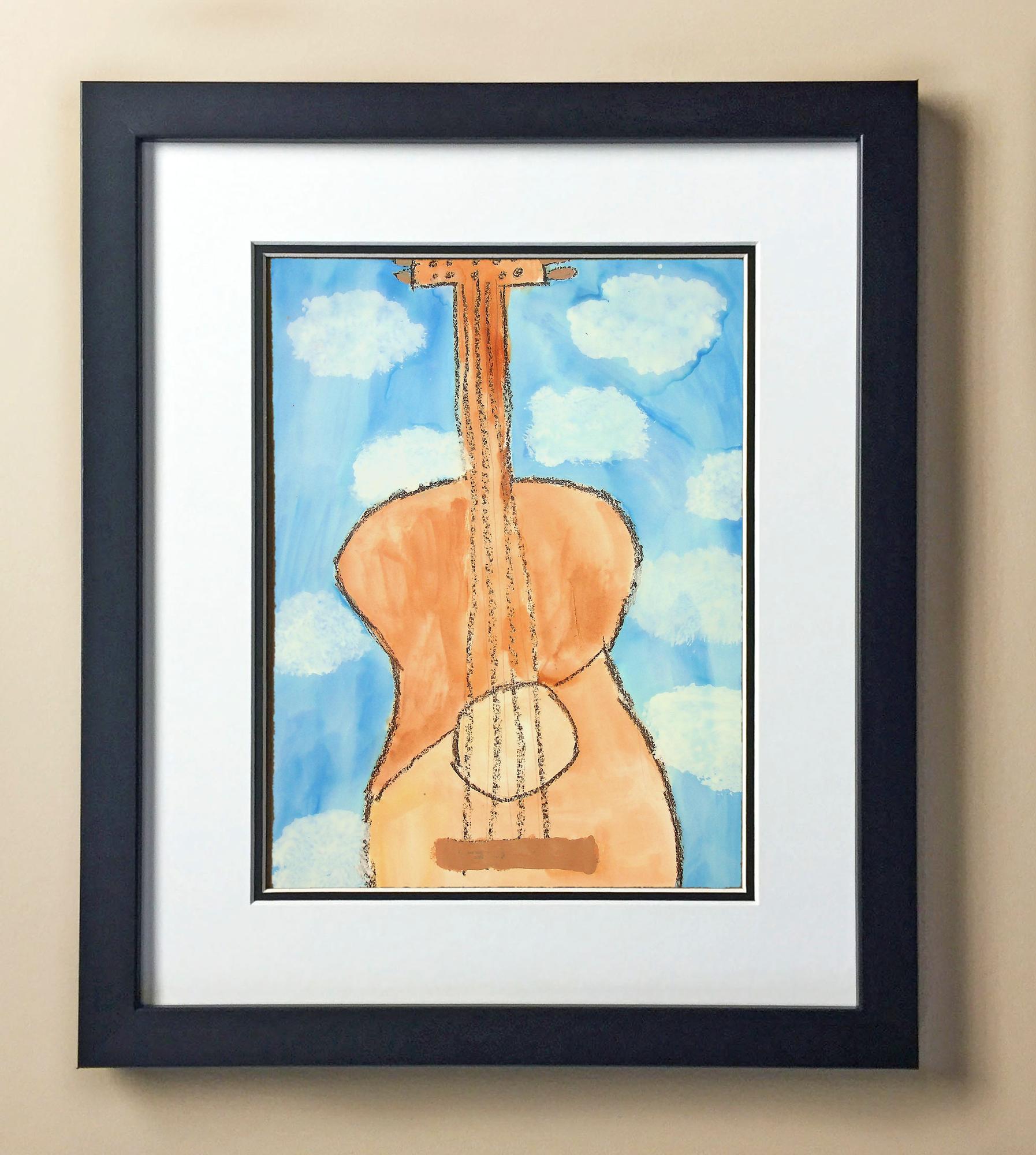 Included with the purchase is the Students Artwork, Frame, double matboard, shatter proof plexiglass, and a ready to hang backerboard with turnbuttons