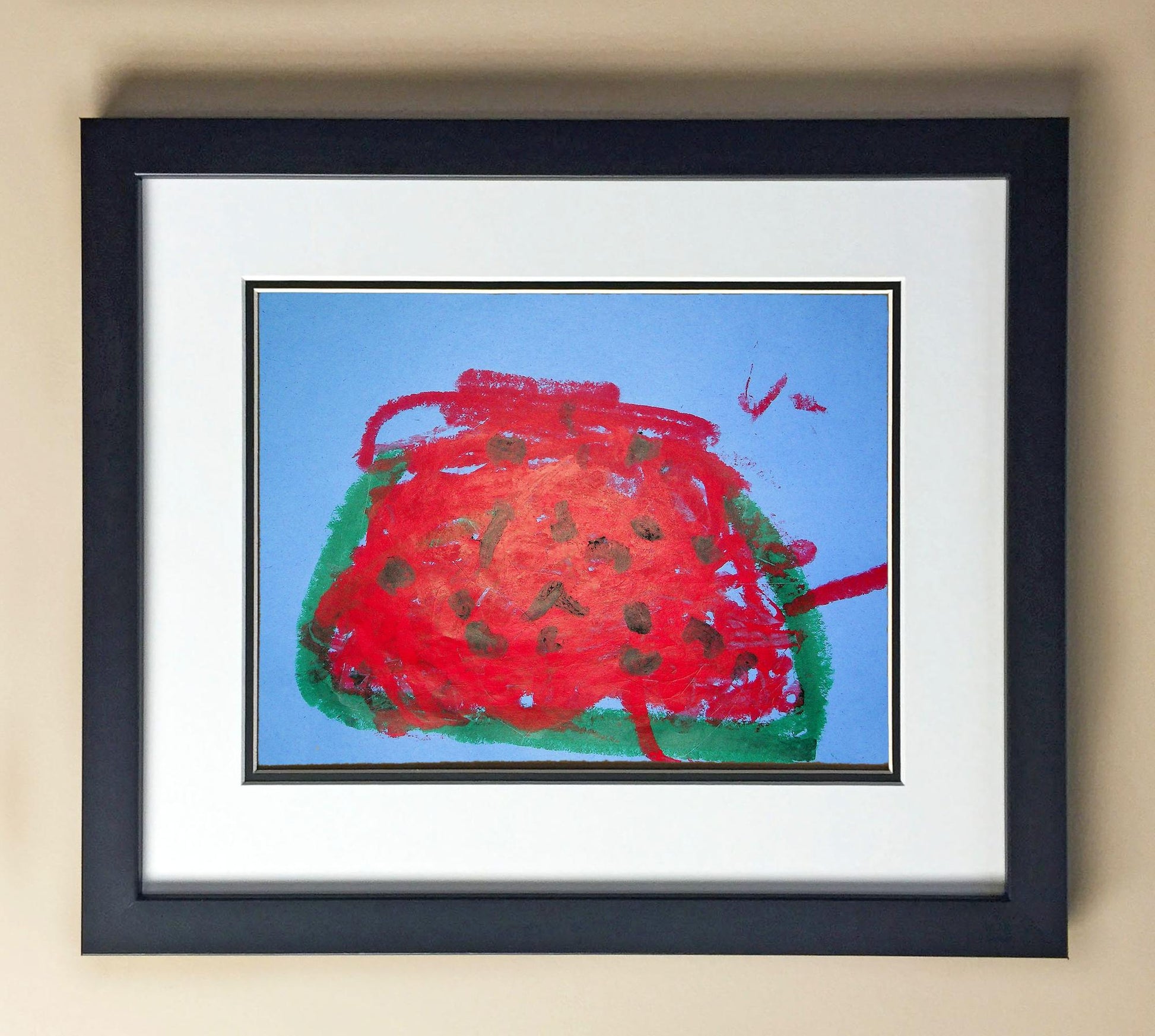 Included with the purchase is the Students Artwork, Frame, double matboard, shatter proof plexiglass, and a ready to hang backerboard with turnbuttons