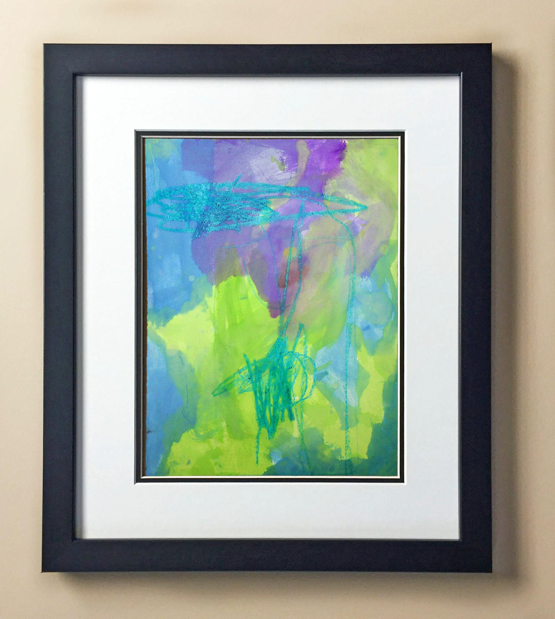Included with the purchase is the Students Artwork, Frame, double matboard, shatter proof plexiglass, and a ready to hang backerboard with turnbuttons