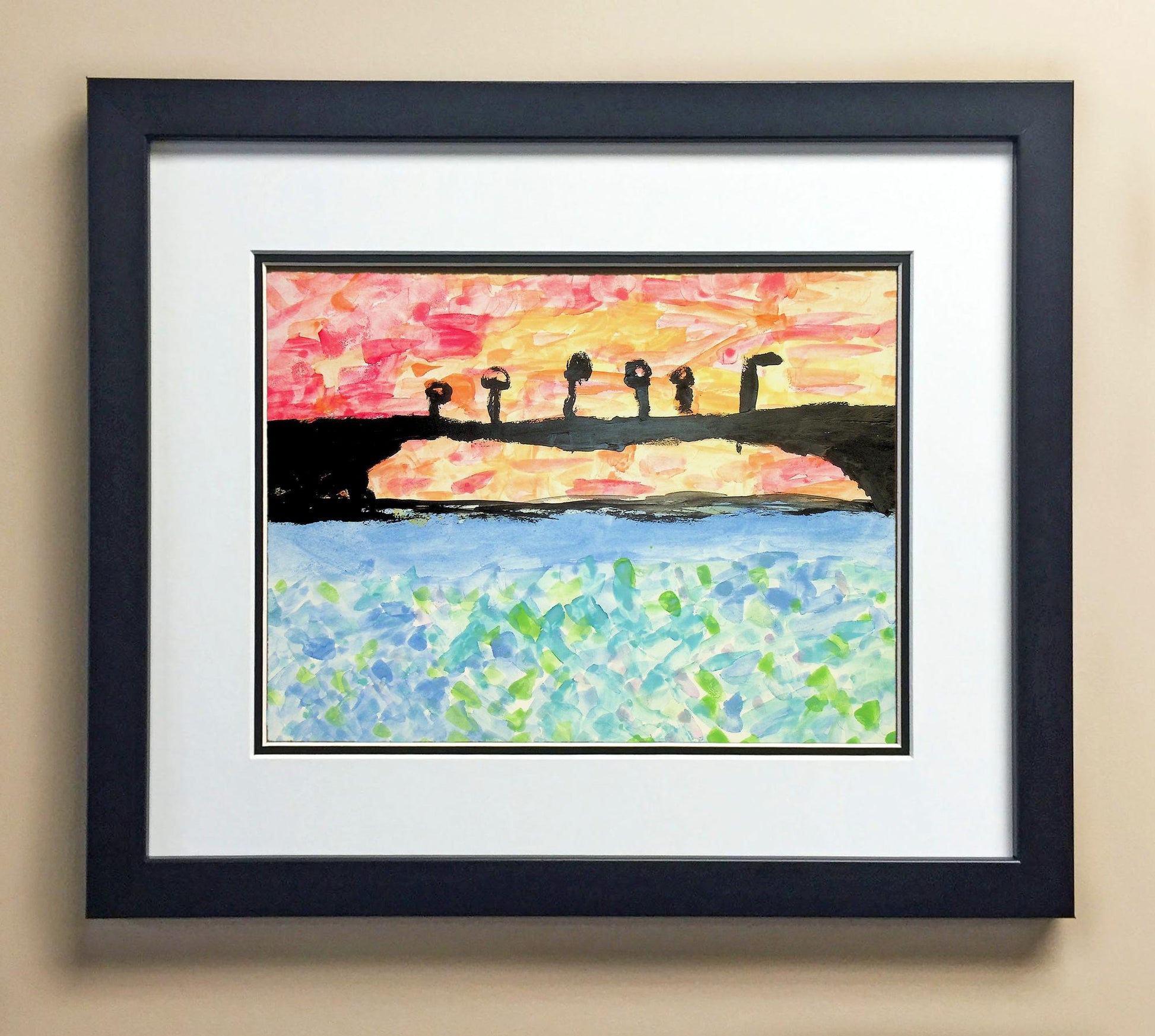 Included with the purchase is the Students Artwork, Frame, double matboard, shatter proof plexiglass, and a ready to hang backerboard with turnbuttons