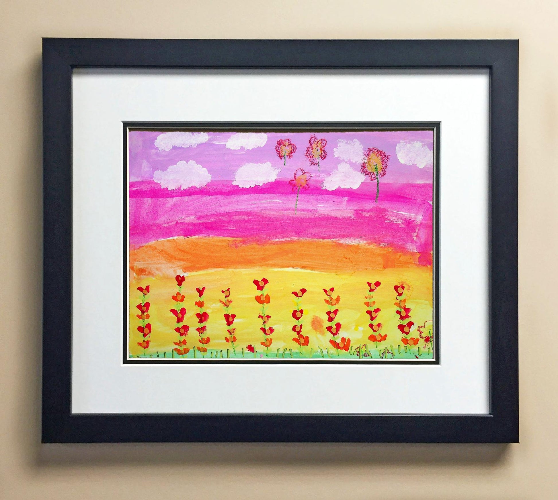 Included with the purchase is the Students Artwork, Frame, double matboard, shatter proof plexiglass, and a ready to hang backerboard with turnbuttons