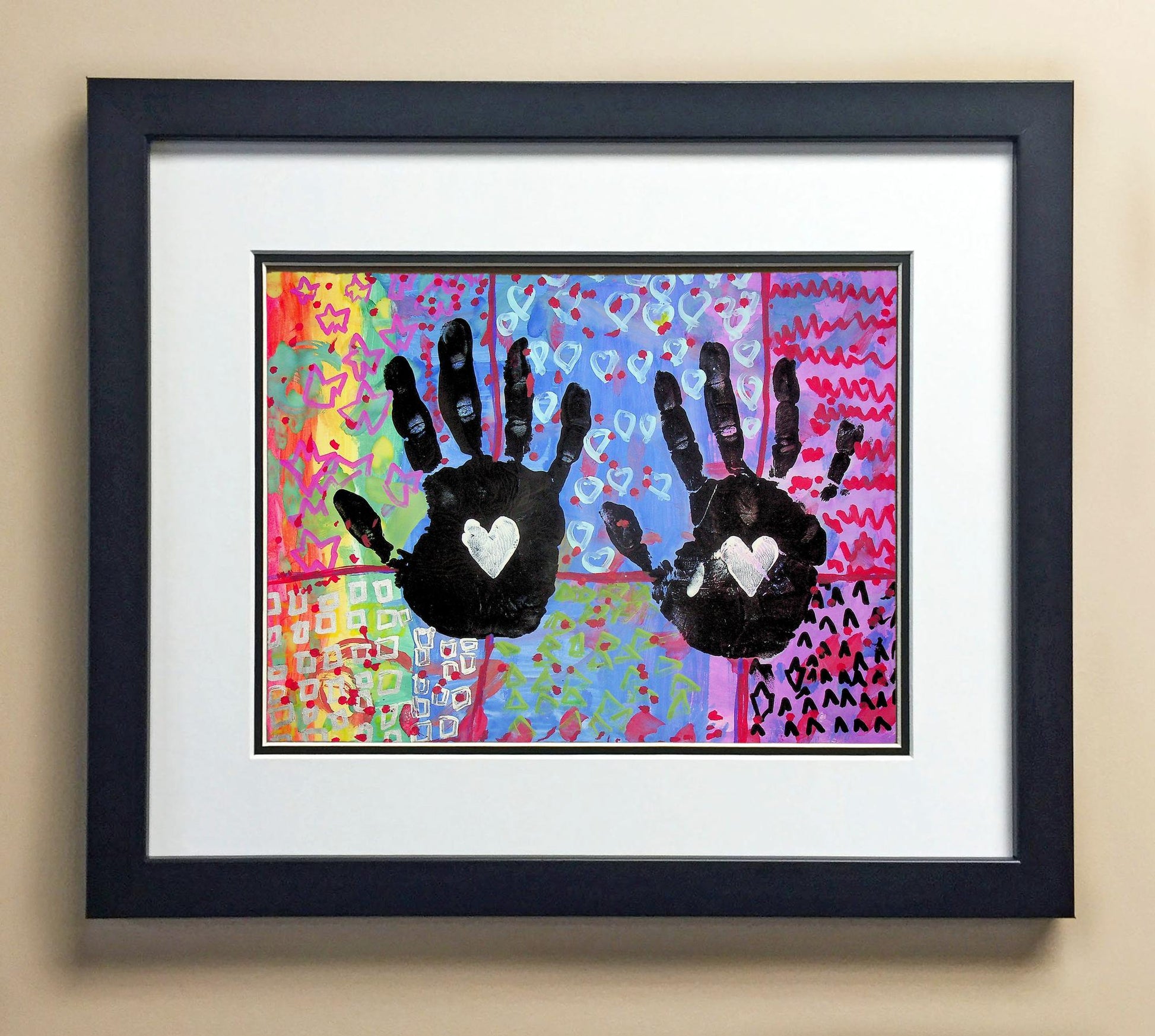 Included with the purchase is the Students Artwork, Frame, double matboard, shatter proof plexiglass, and a ready to hang backerboard with turnbuttons