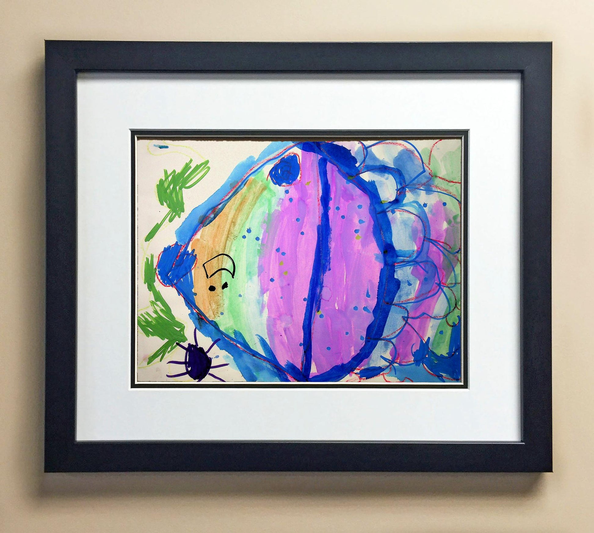 Included with the purchase is the Students Artwork, Frame, double matboard, shatter proof plexiglass, and a ready to hang backerboard with turnbuttons