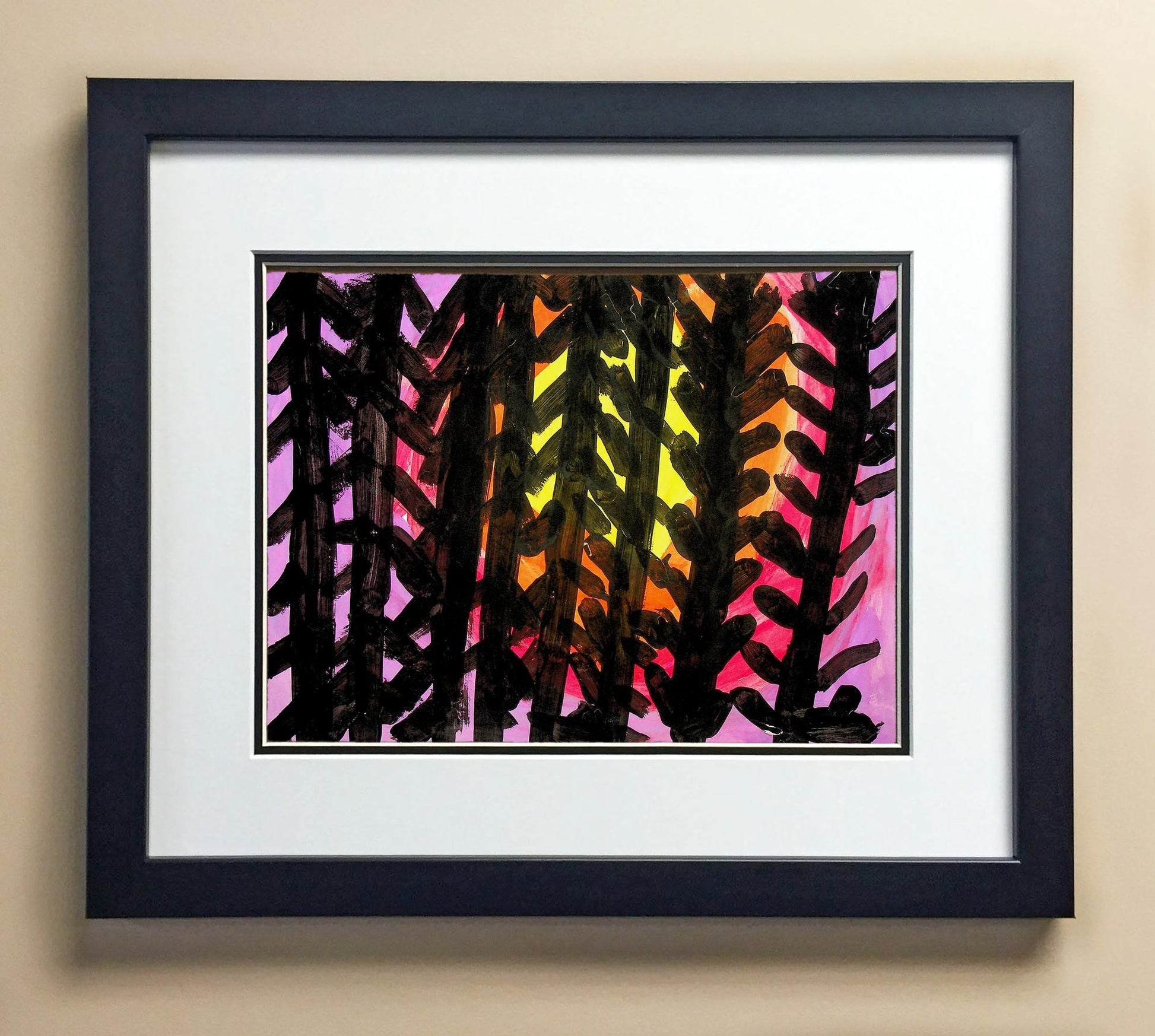 Included with the purchase is the Students Artwork, Frame, double matboard, shatter proof plexiglass, and a ready to hang backerboard with turnbuttons