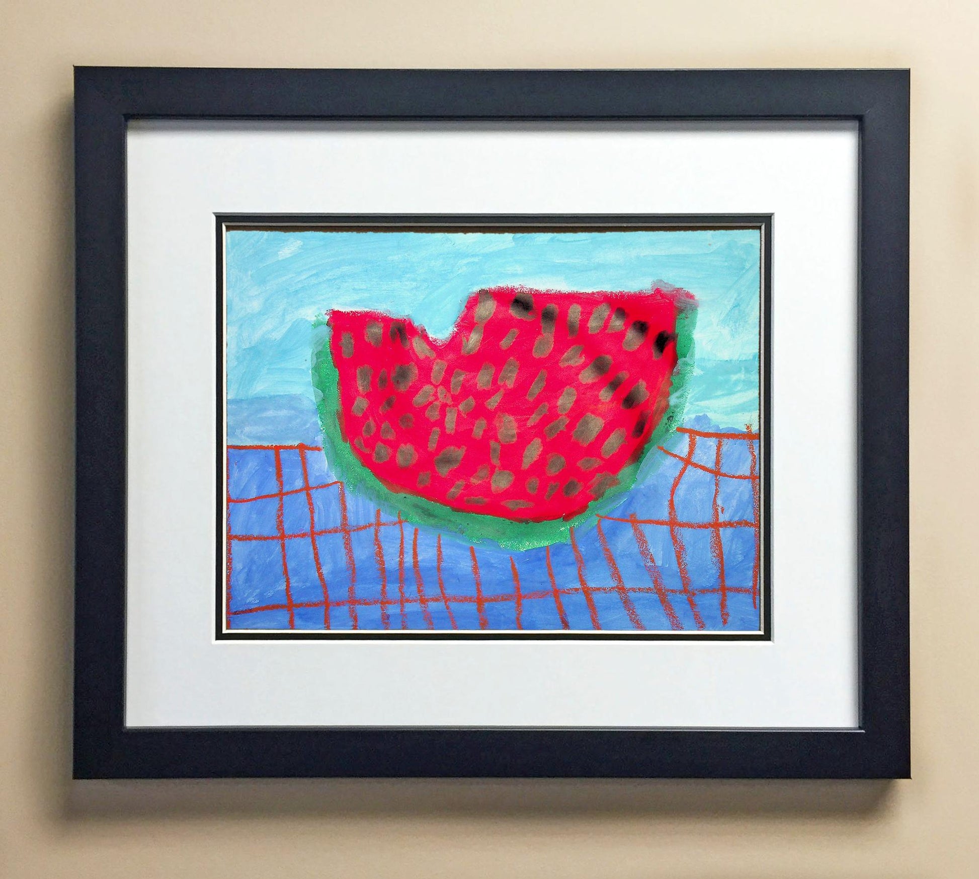Included with the purchase is the Students Artwork, Frame, double matboard, shatter proof plexiglass, and a ready to hang backerboard with turnbuttons
