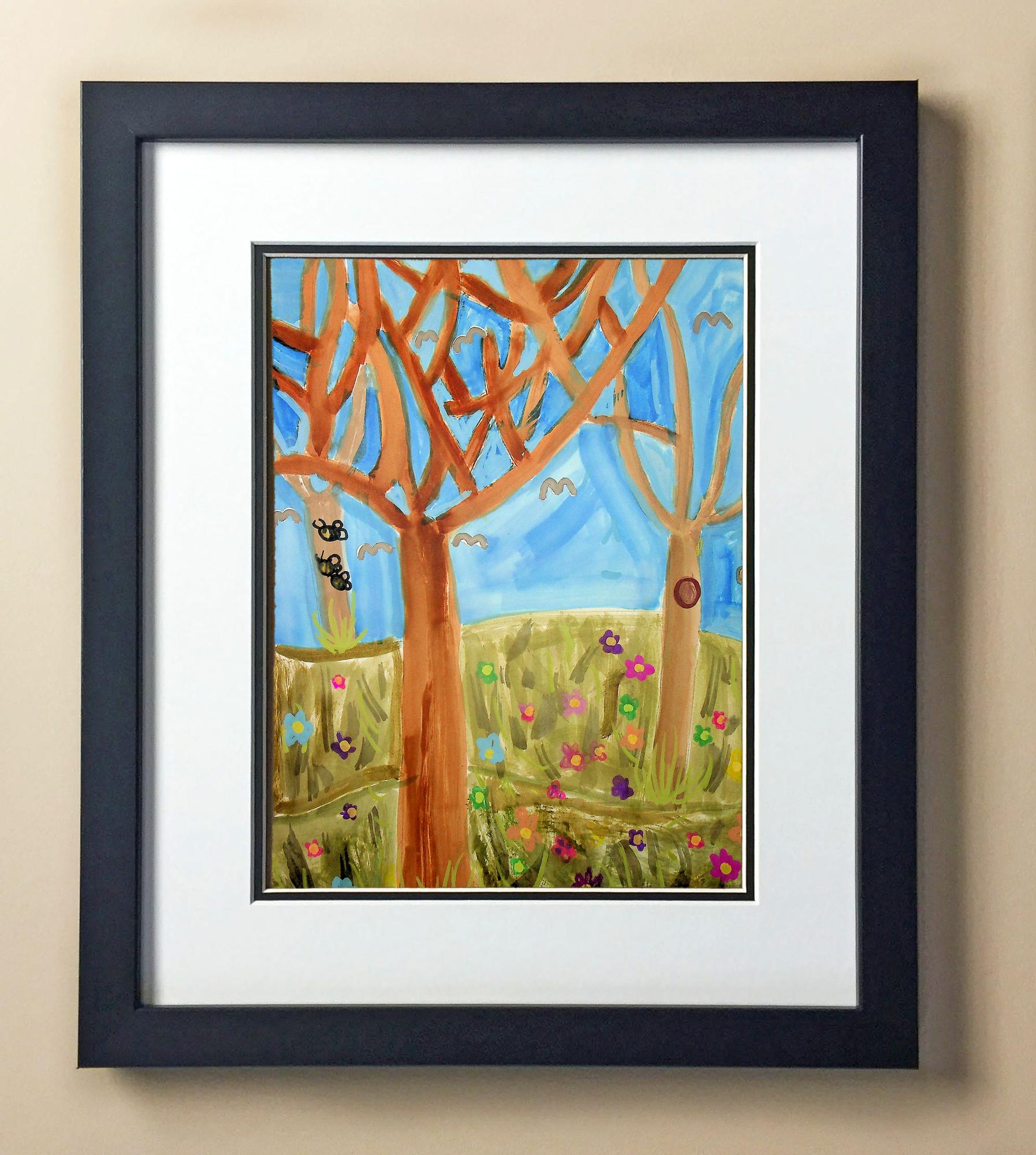 Included with the purchase is the Students Artwork, Frame, double matboard, shatter proof plexiglass, and a ready to hang backerboard with turnbuttons