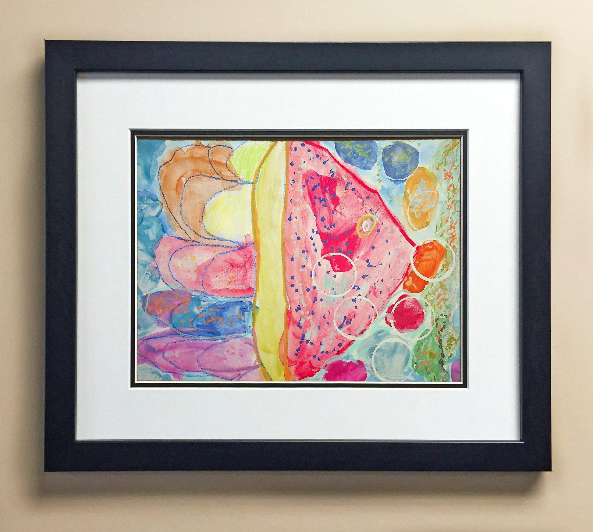 Included with the purchase is the Students Artwork, Frame, double matboard, shatter proof plexiglass, and a ready to hang backerboard with turnbuttons