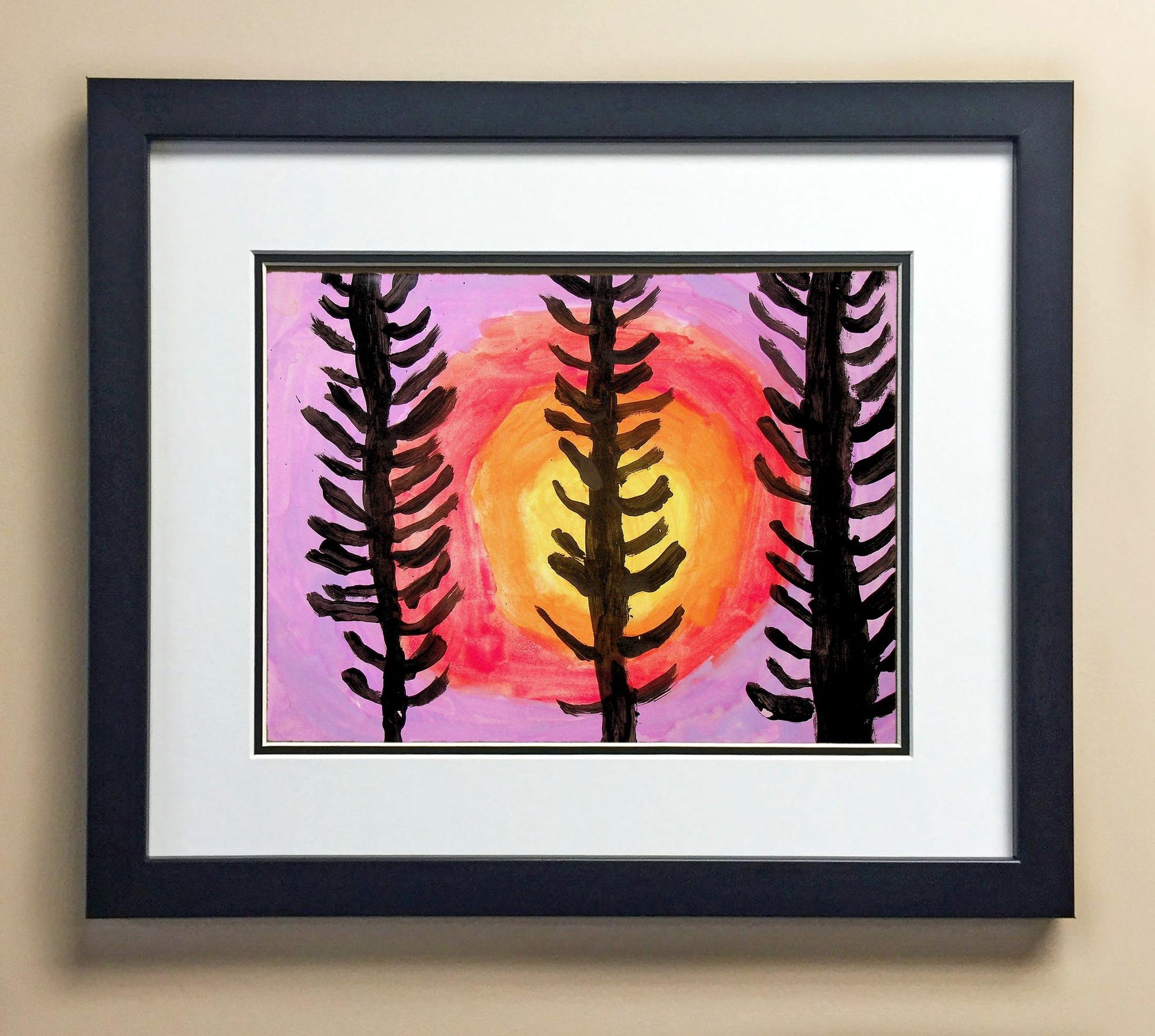 Included with the purchase is the Students Artwork, Frame, double matboard, shatter proof plexiglass, and a ready to hang backerboard with turnbuttons