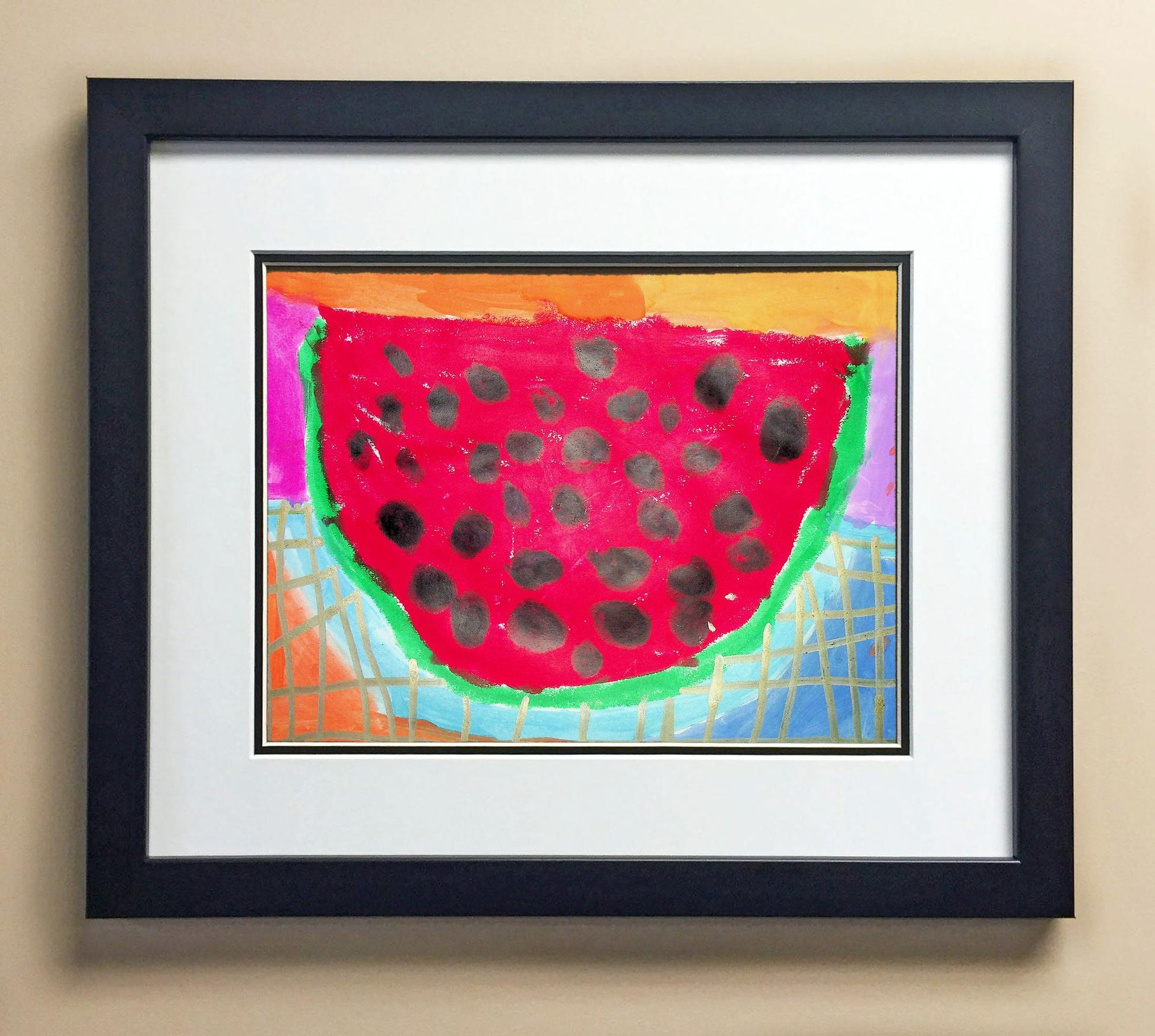 Included with the purchase is the Students Artwork, Frame, double matboard, shatter proof plexiglass, and a ready to hang backerboard with turnbuttons