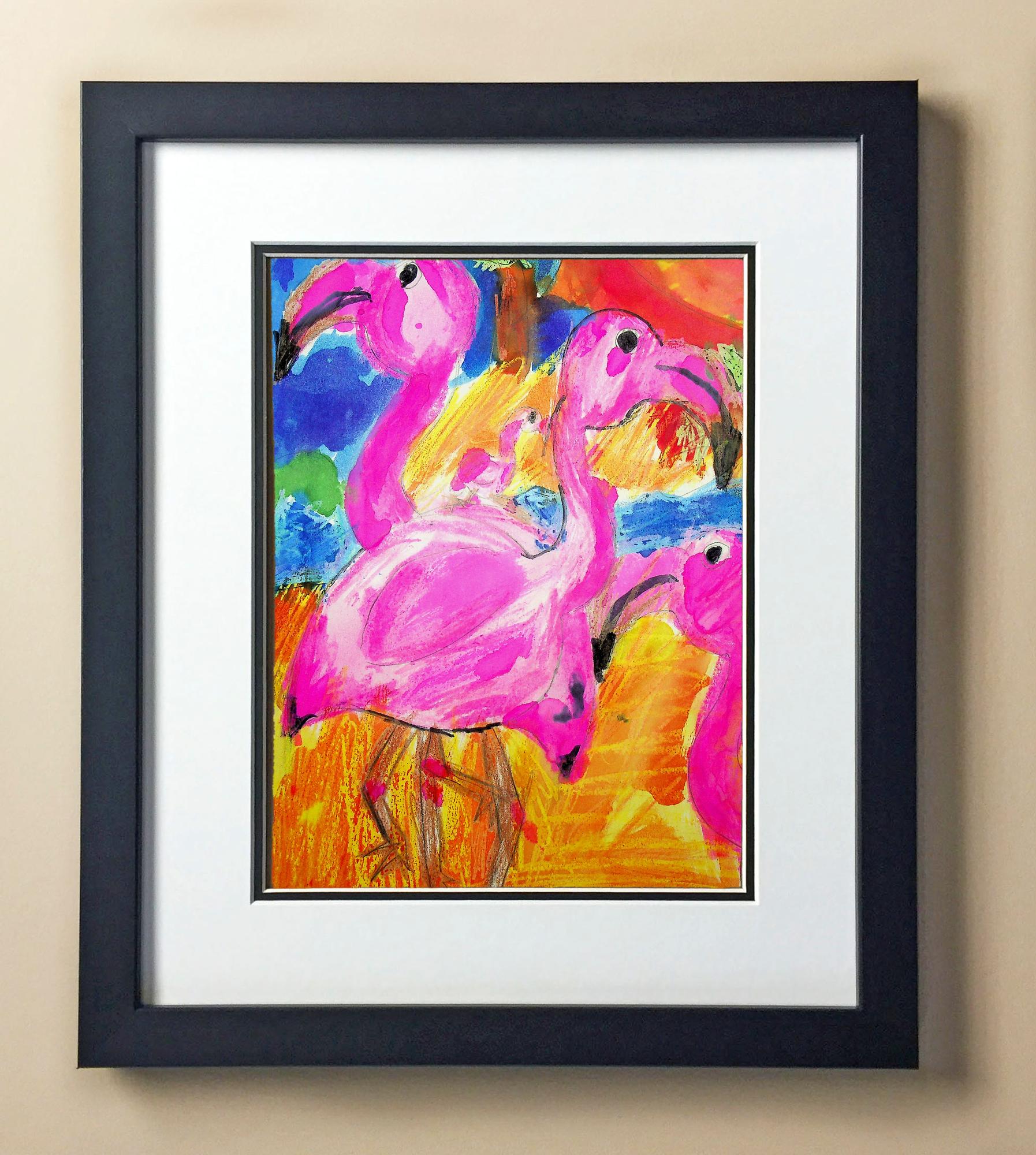 Included with the purchase is the Students Artwork, Frame, double matboard, shatter proof plexiglass, and a ready to hang backerboard with turnbuttons