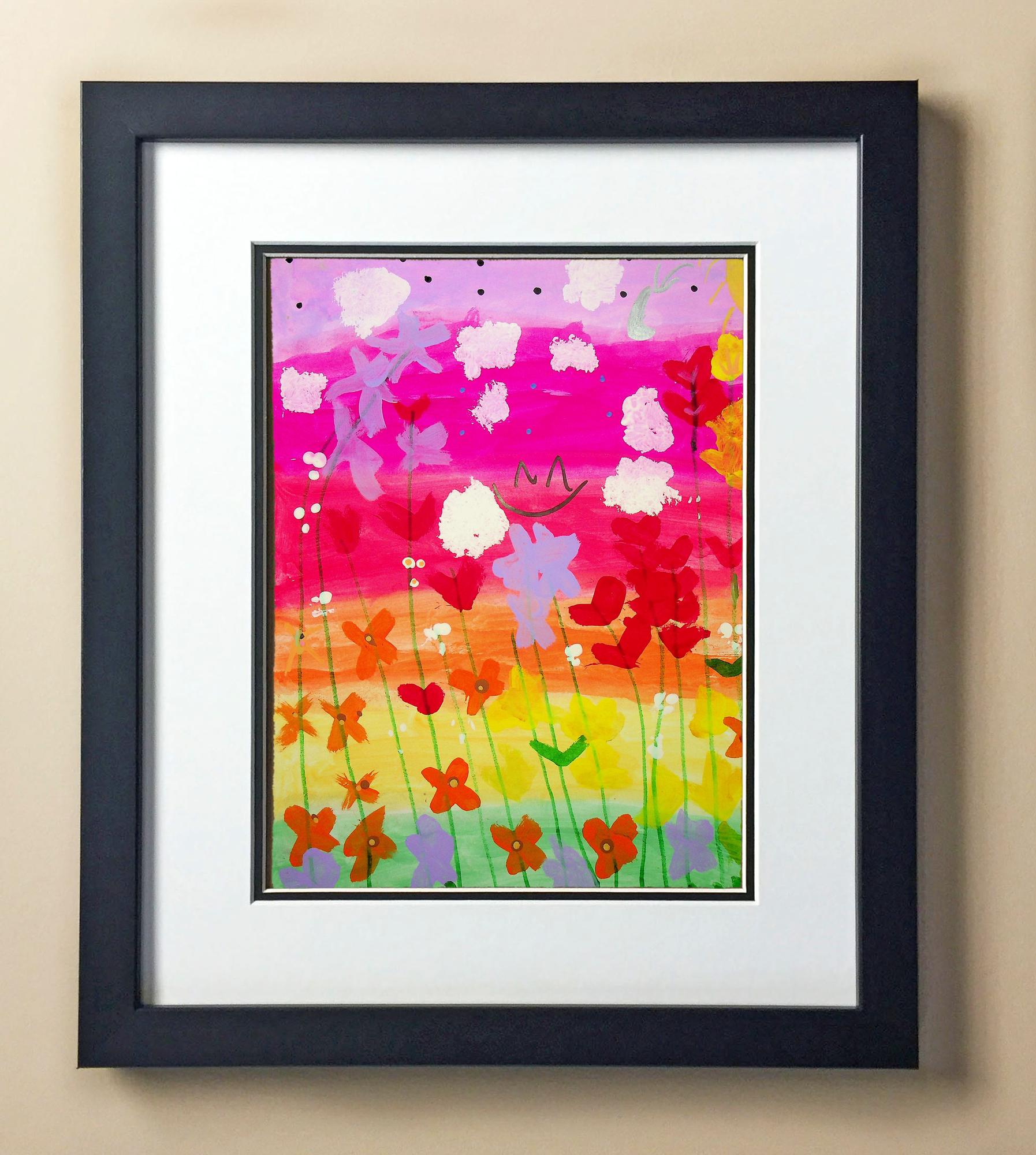 Included with the purchase is the Students Artwork, Frame, double matboard, shatter proof plexiglass, and a ready to hang backerboard with turnbuttons