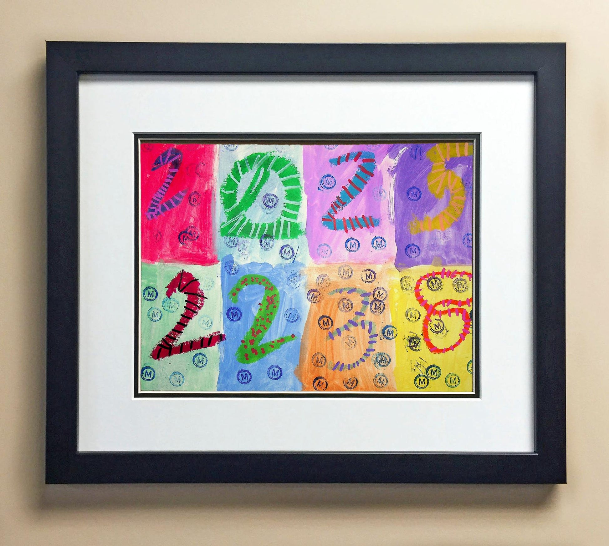 Included with the purchase is the Students Artwork, Frame, double matboard, shatter proof plexiglass, and a ready to hang backerboard with turnbuttons