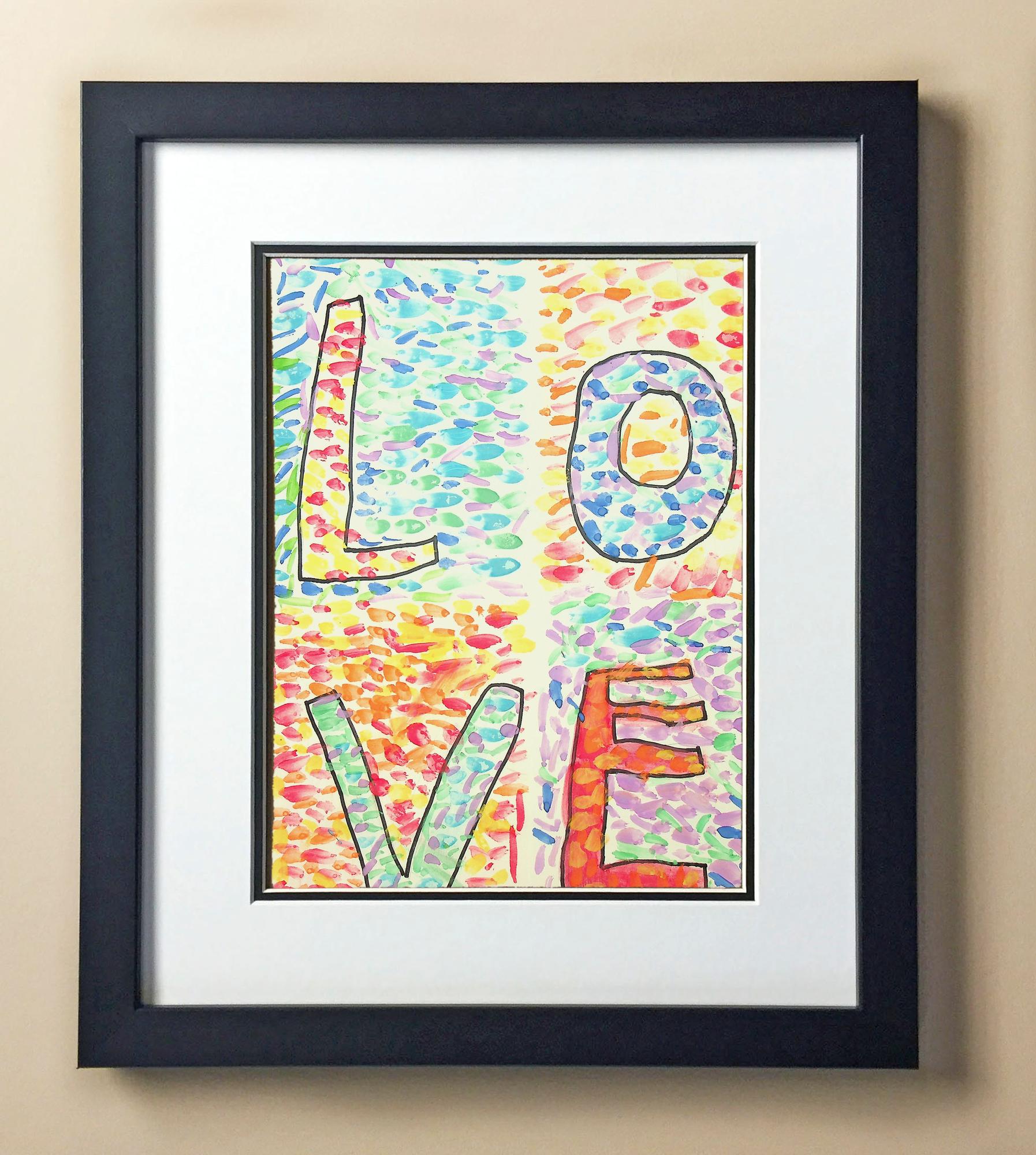 Included with the purchase is the Students Artwork, Frame, double matboard, shatter proof plexiglass, and a ready to hang backerboard with turnbuttons