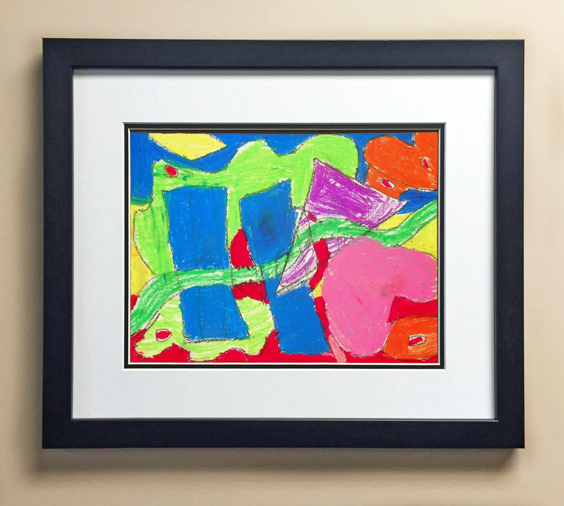 Included with the purchase is the Students Artwork, Frame, double matboard, shatter proof plexiglass, and a ready to hang backerboard with turnbuttons