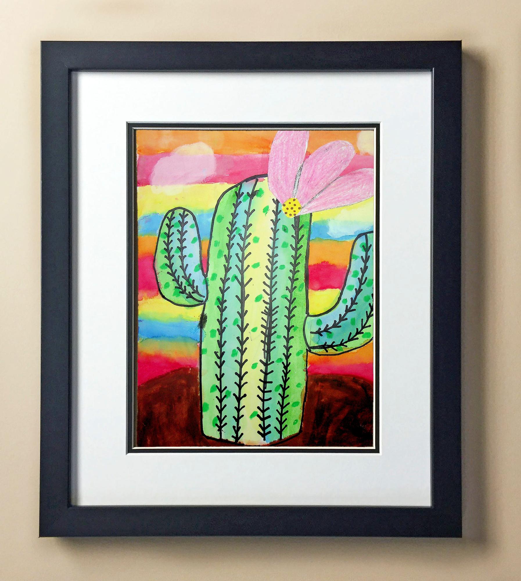 Included with the purchase is the Students Artwork, Frame, double matboard, shatter proof plexiglass, and a ready to hang backerboard with turnbuttons