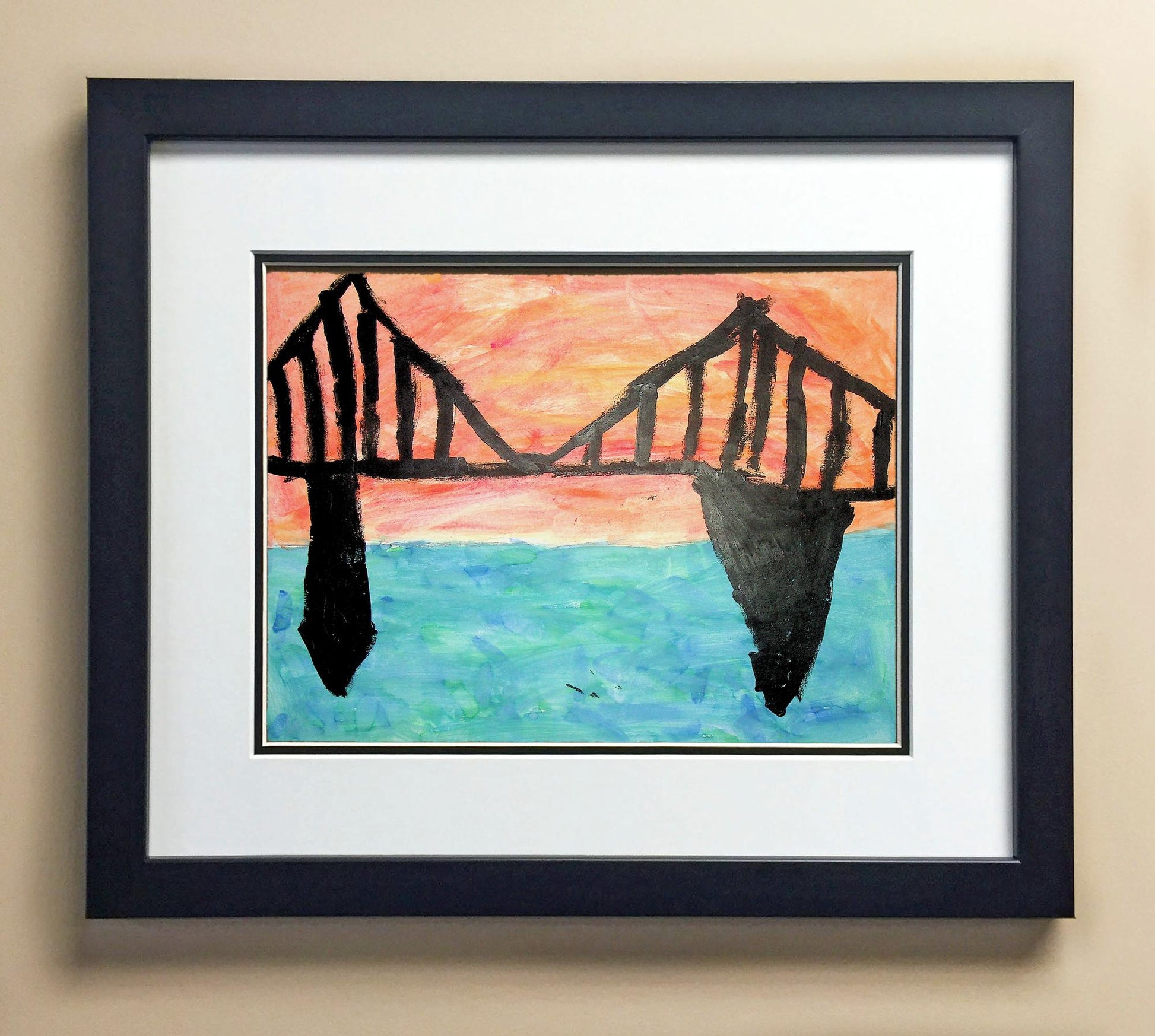 Included with the purchase is the Students Artwork, Frame, double matboard, shatter proof plexiglass, and a ready to hang backerboard with turnbuttons