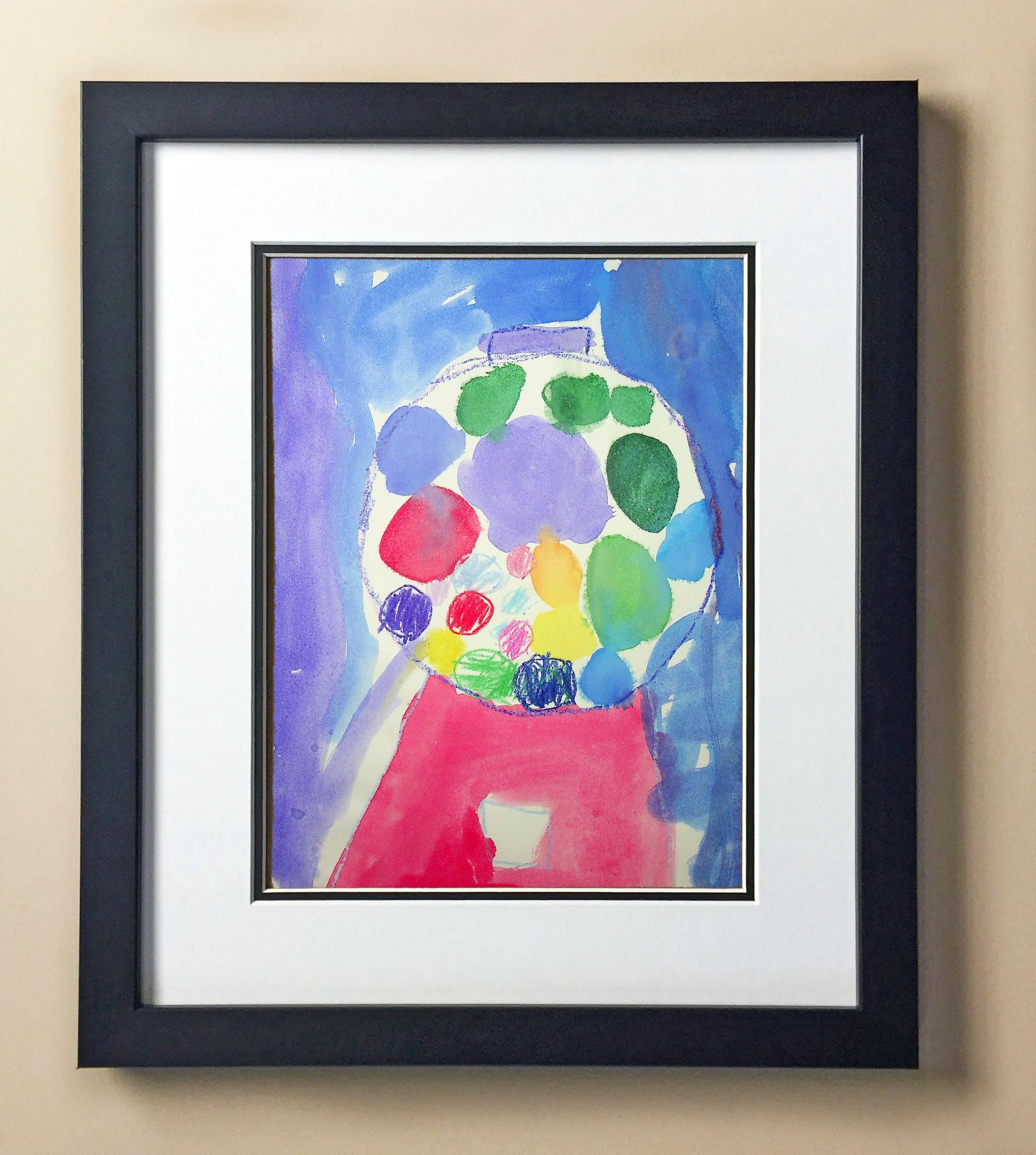 Included with the purchase is the Students Artwork, Frame, double matboard, shatter proof plexiglass, and a ready to hang backerboard with turnbuttons