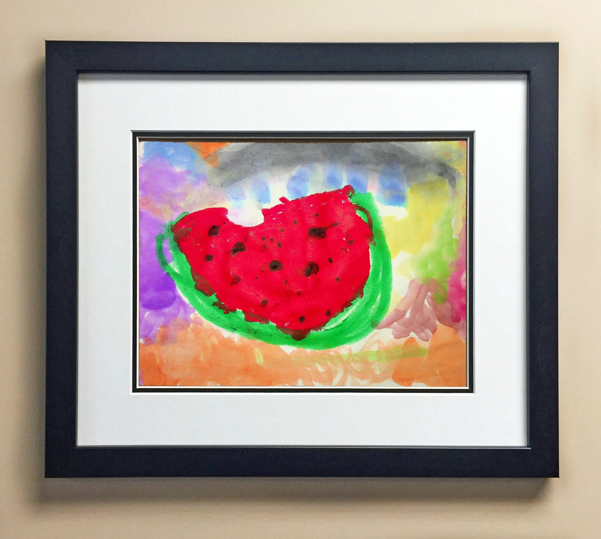 Included with the purchase is the Students Artwork, Frame, double matboard, shatter proof plexiglass, and a ready to hang backerboard with turnbuttons