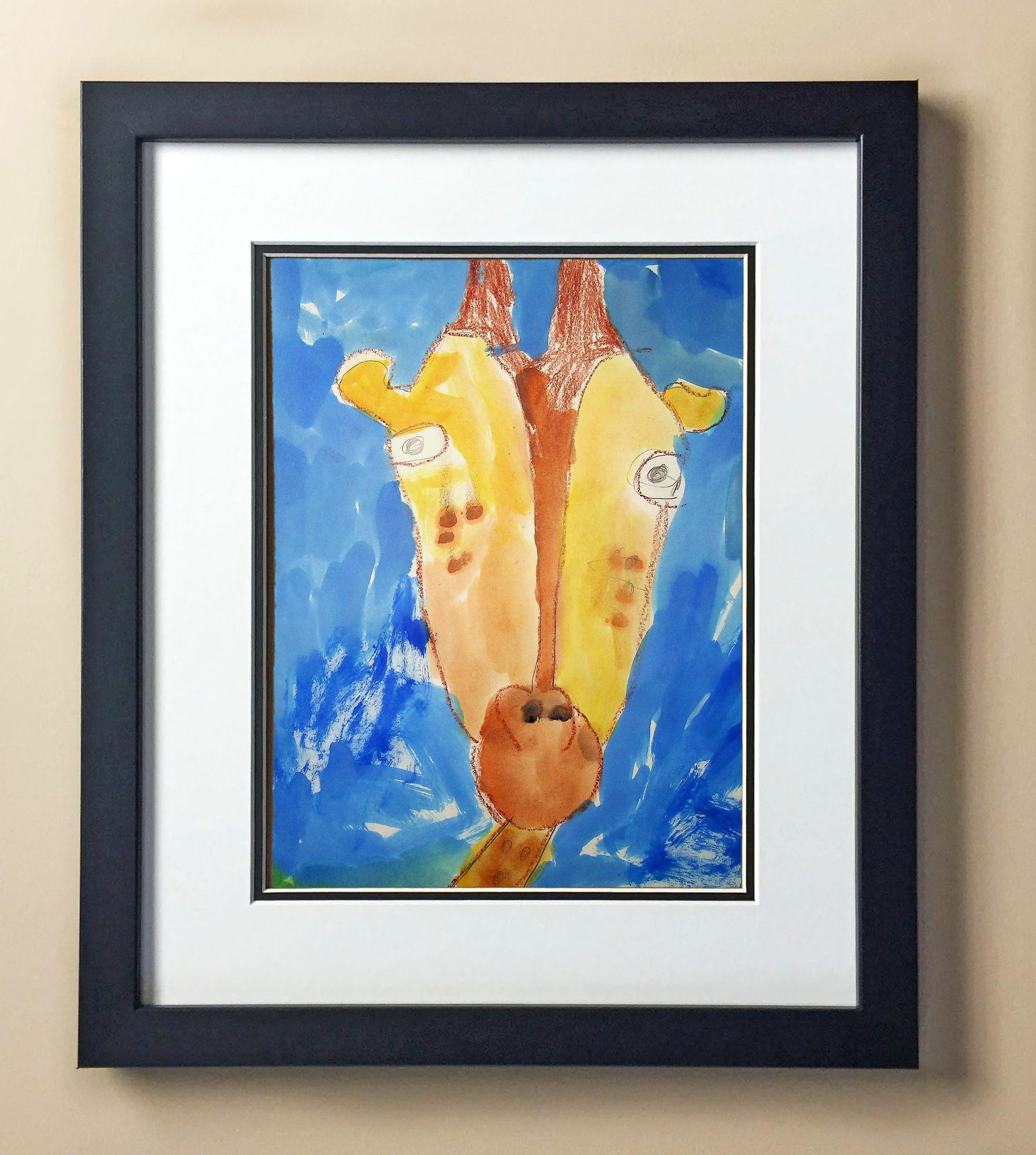 Included with the purchase is the Students Artwork, Frame, double matboard, shatter proof plexiglass, and a ready to hang backerboard with turnbuttons