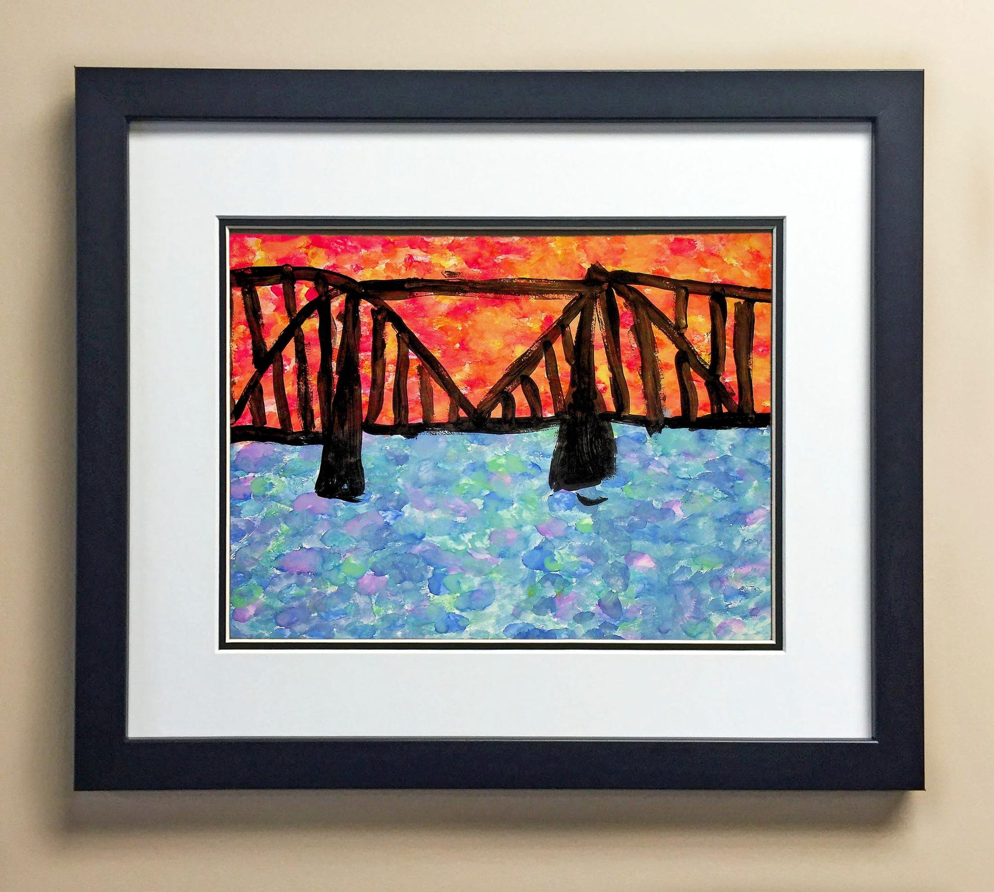 Included with the purchase is the Students Artwork, Frame, double matboard, shatter proof plexiglass, and a ready to hang backerboard with turnbuttons