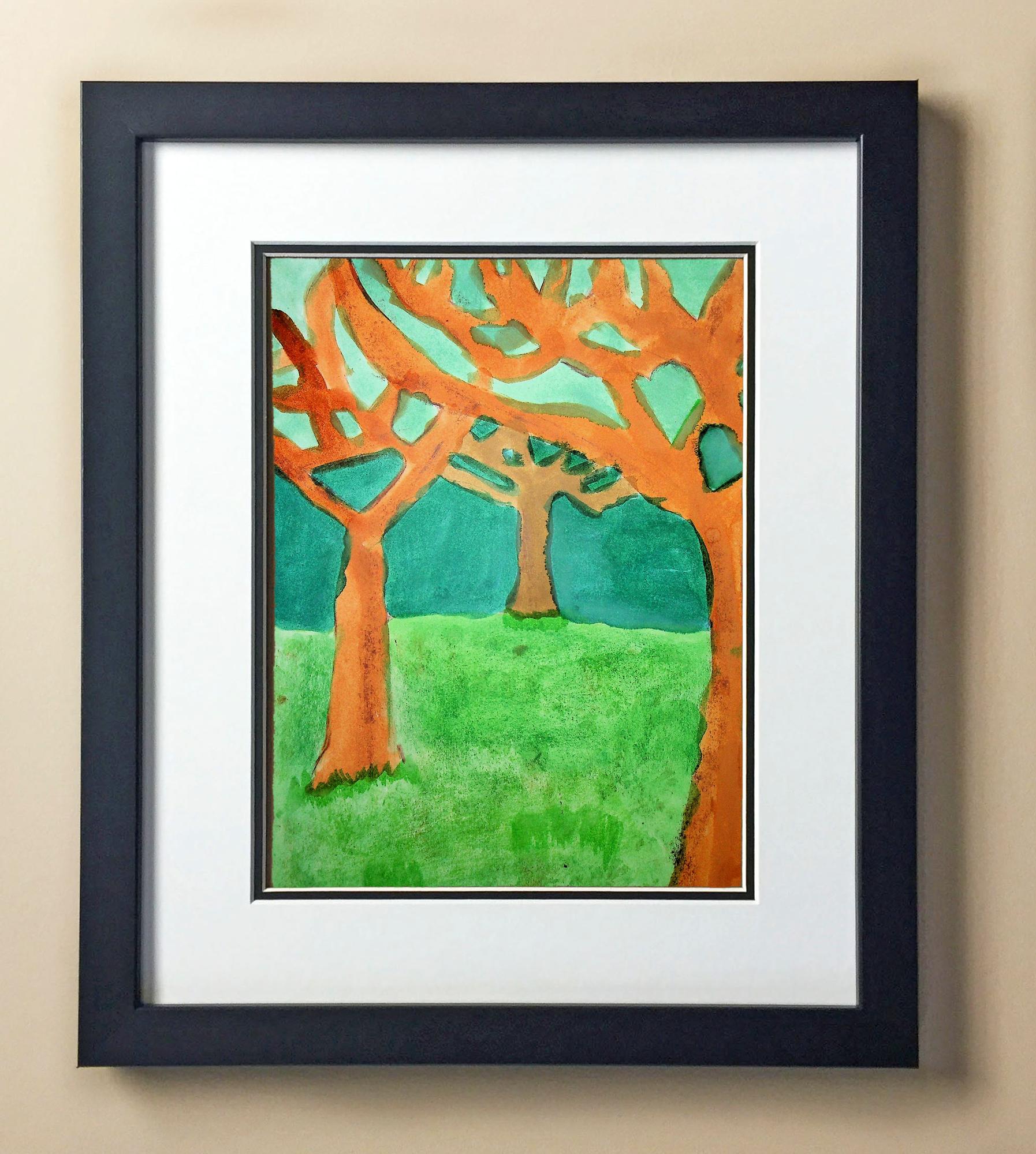 Included with the purchase is the Students Artwork, Frame, double matboard, shatter proof plexiglass, and a ready to hang backerboard with turnbuttons