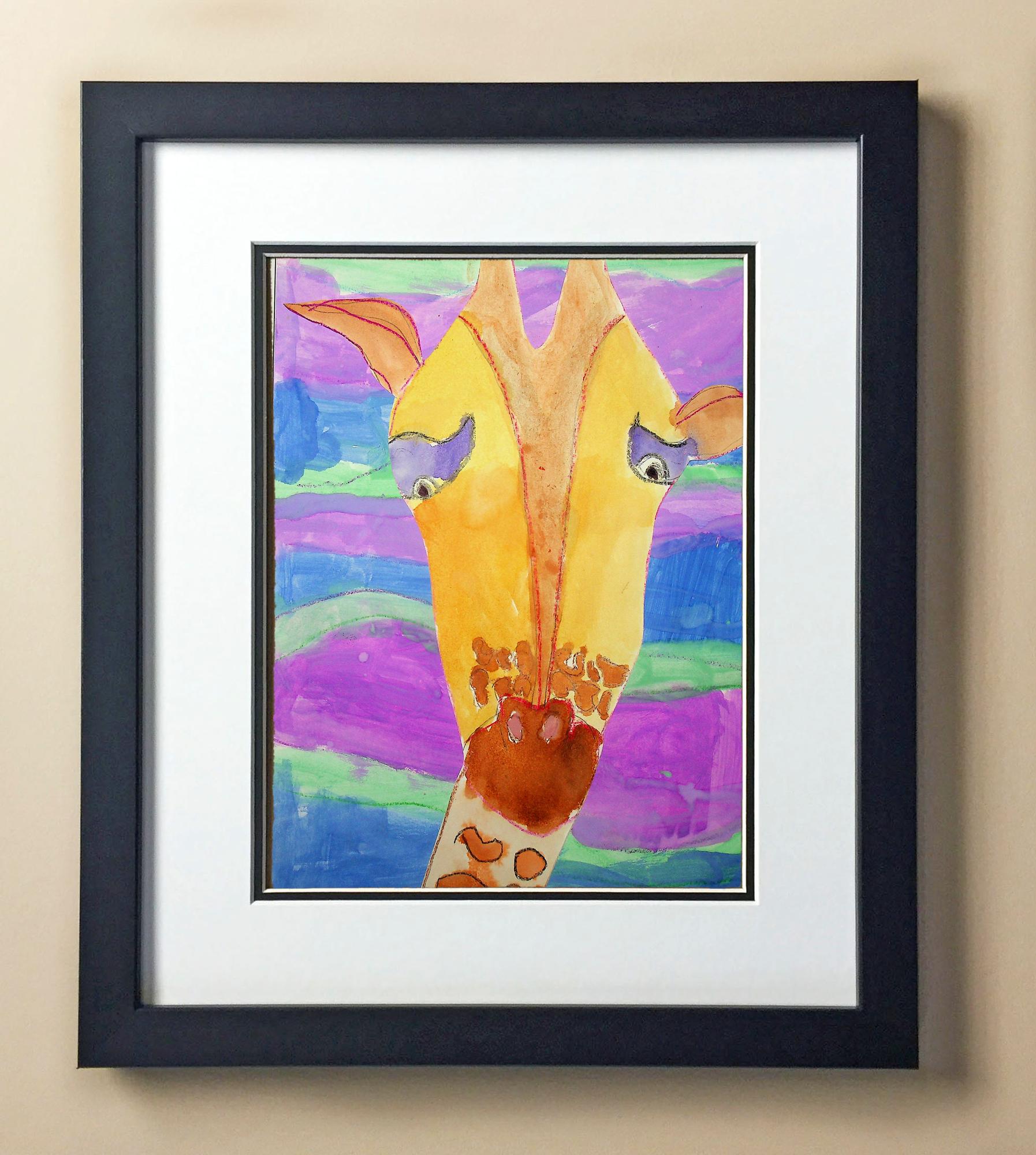 Included with the purchase is the Students Artwork, Frame, double matboard, shatter proof plexiglass, and a ready to hang backerboard with turnbuttons