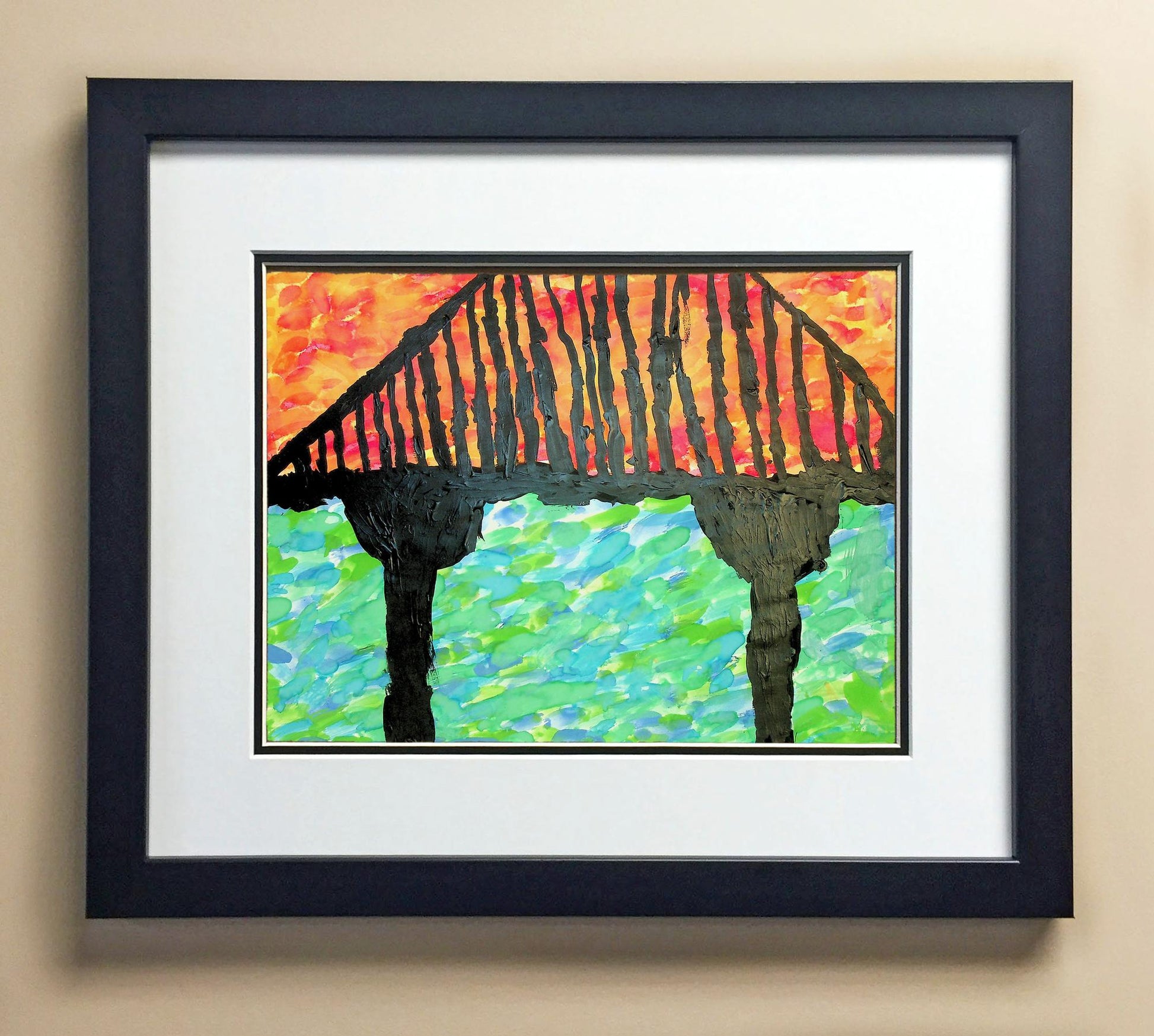 Included with the purchase is the Students Artwork, Frame, double matboard, shatter proof plexiglass, and a ready to hang backerboard with turnbuttons