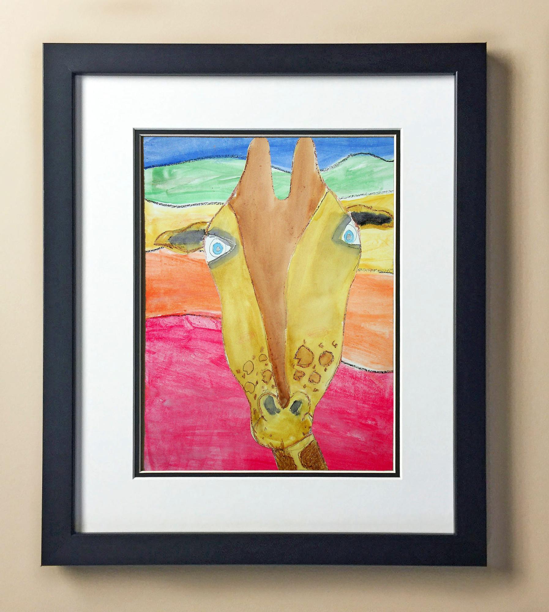 Included with the purchase is the Students Artwork, Frame, double matboard, shatter proof plexiglass, and a ready to hang backerboard with turnbuttons