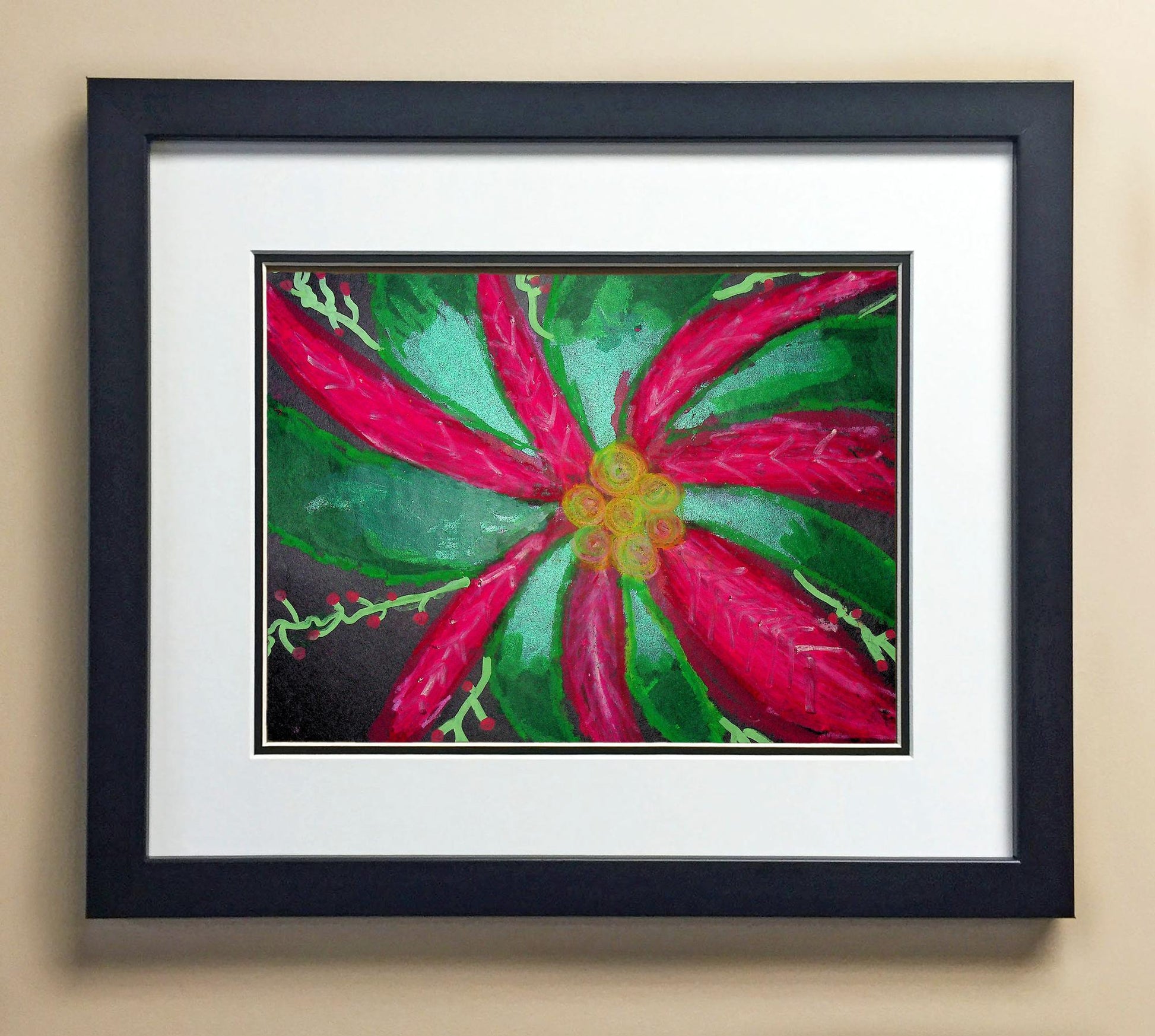 Included with the purchase is the Students Artwork, Frame, double matboard, shatter proof plexiglass, and a ready to hang backerboard with turnbuttons
