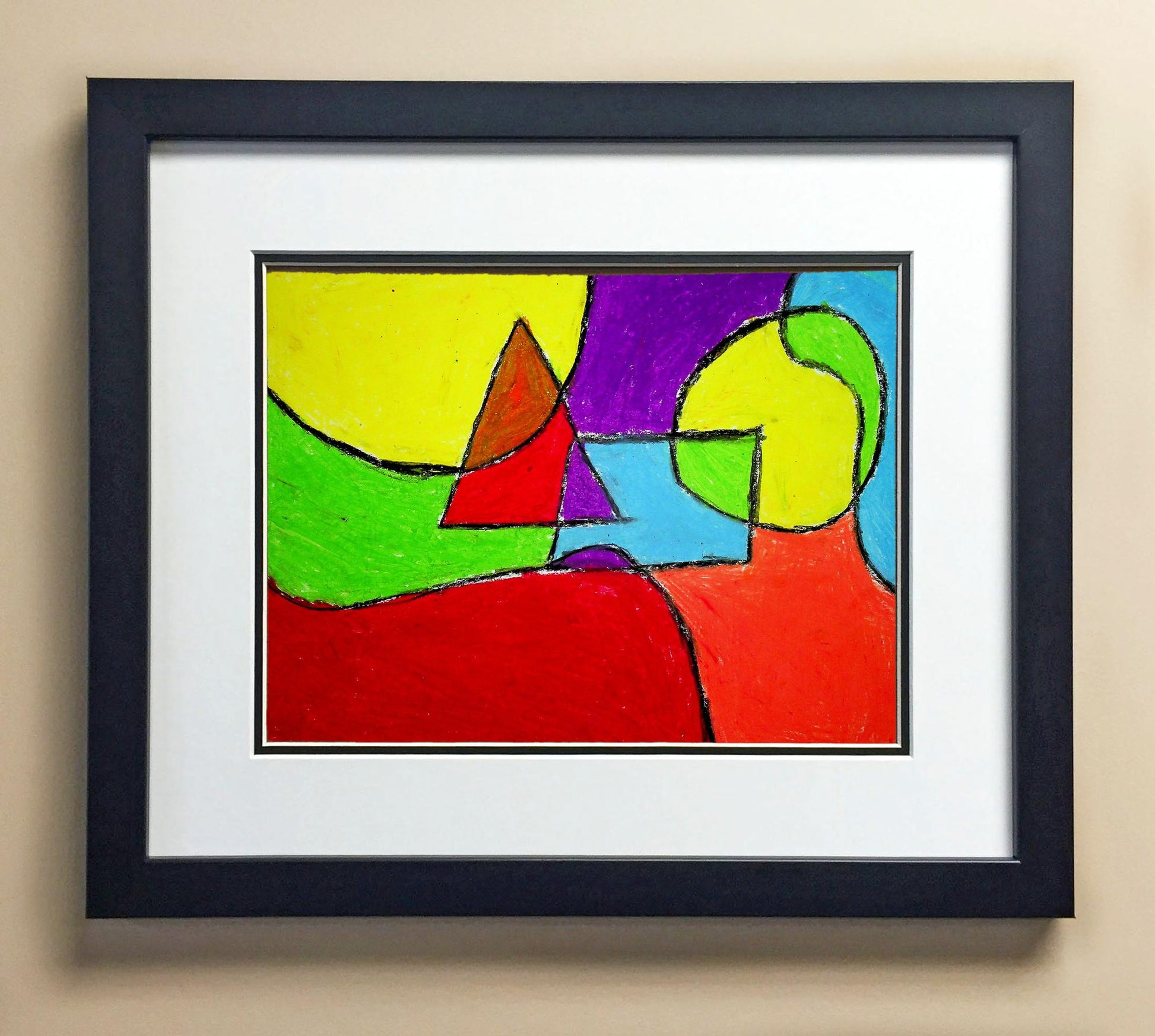 Included with the purchase is the Students Artwork, Frame, double matboard, shatter proof plexiglass, and a ready to hang backerboard with turnbuttons