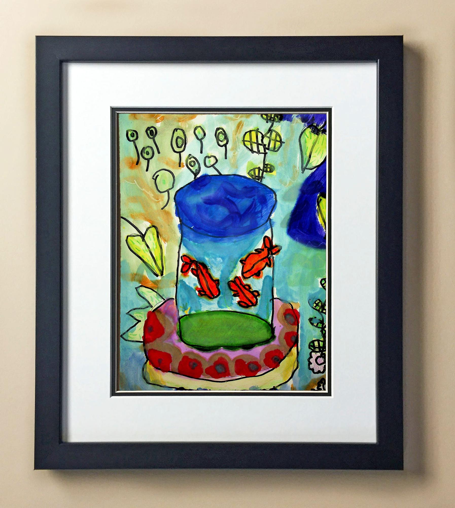 Included with the purchase is the Students Artwork, Frame, double matboard, shatter proof plexiglass, and a ready to hang backerboard with turnbuttons