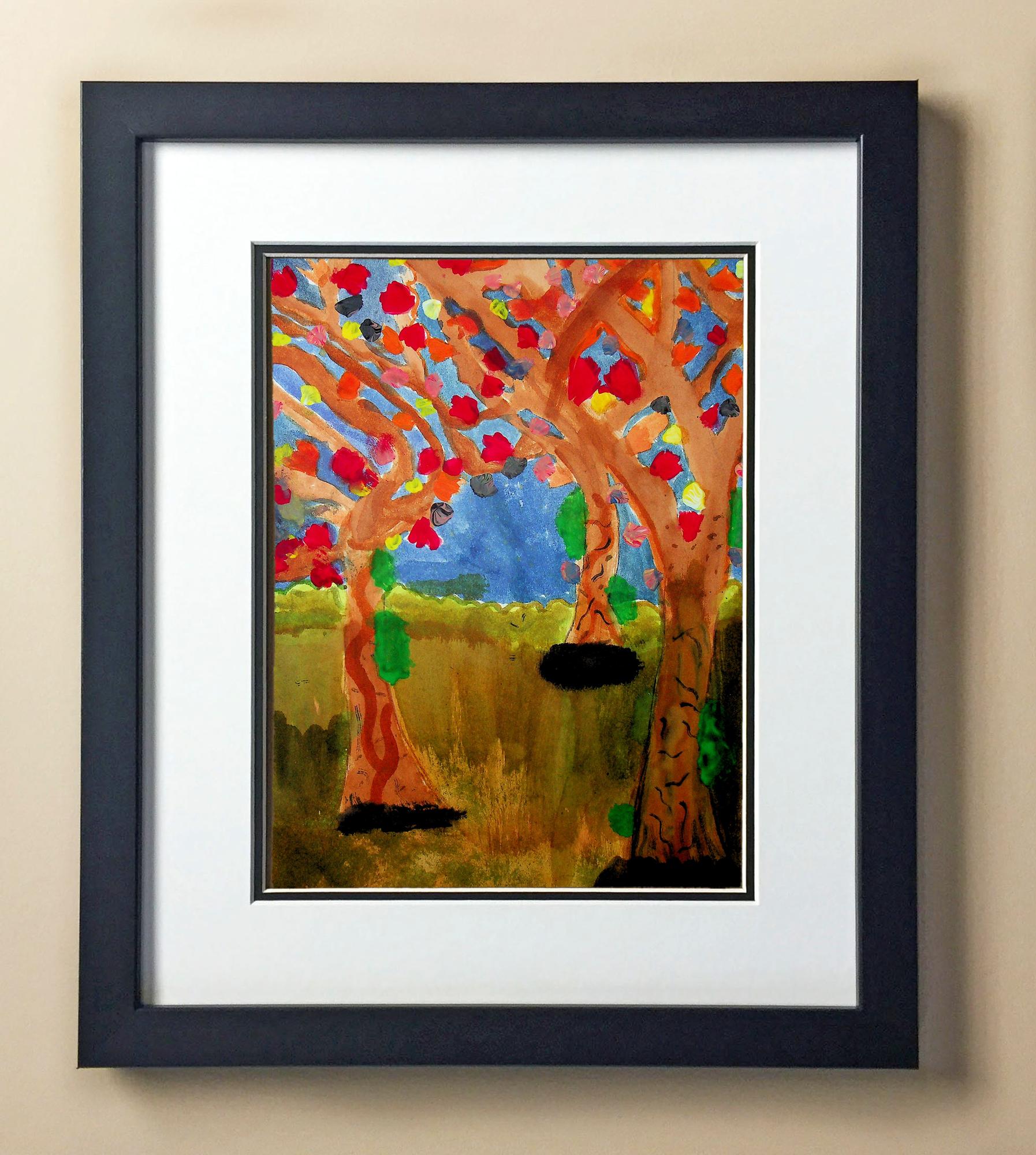 Included with the purchase is the Students Artwork, Frame, double matboard, shatter proof plexiglass, and a ready to hang backerboard with turnbuttons