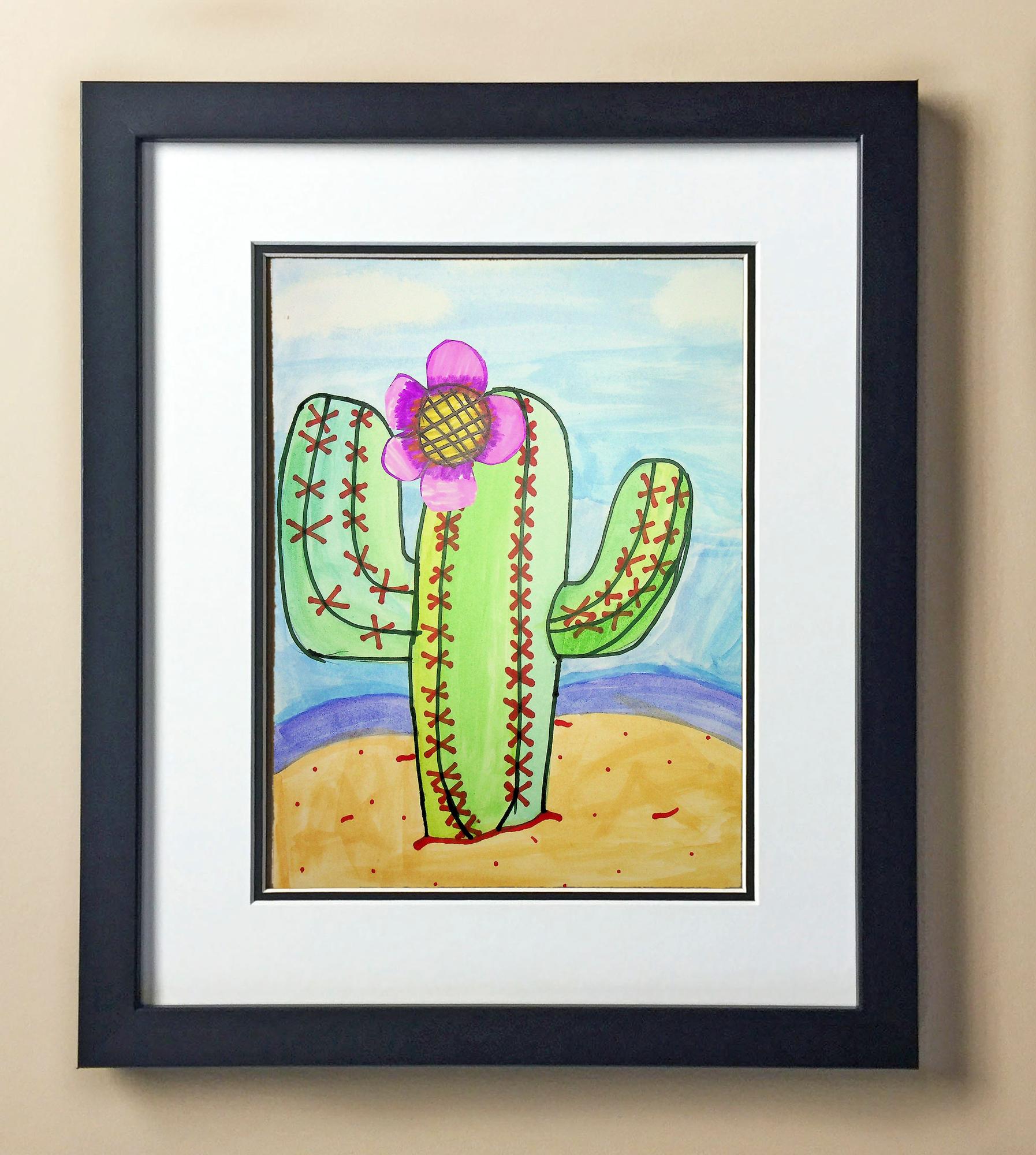 Included with the purchase is the Students Artwork, Frame, double matboard, shatter proof plexiglass, and a ready to hang backerboard with turnbuttons