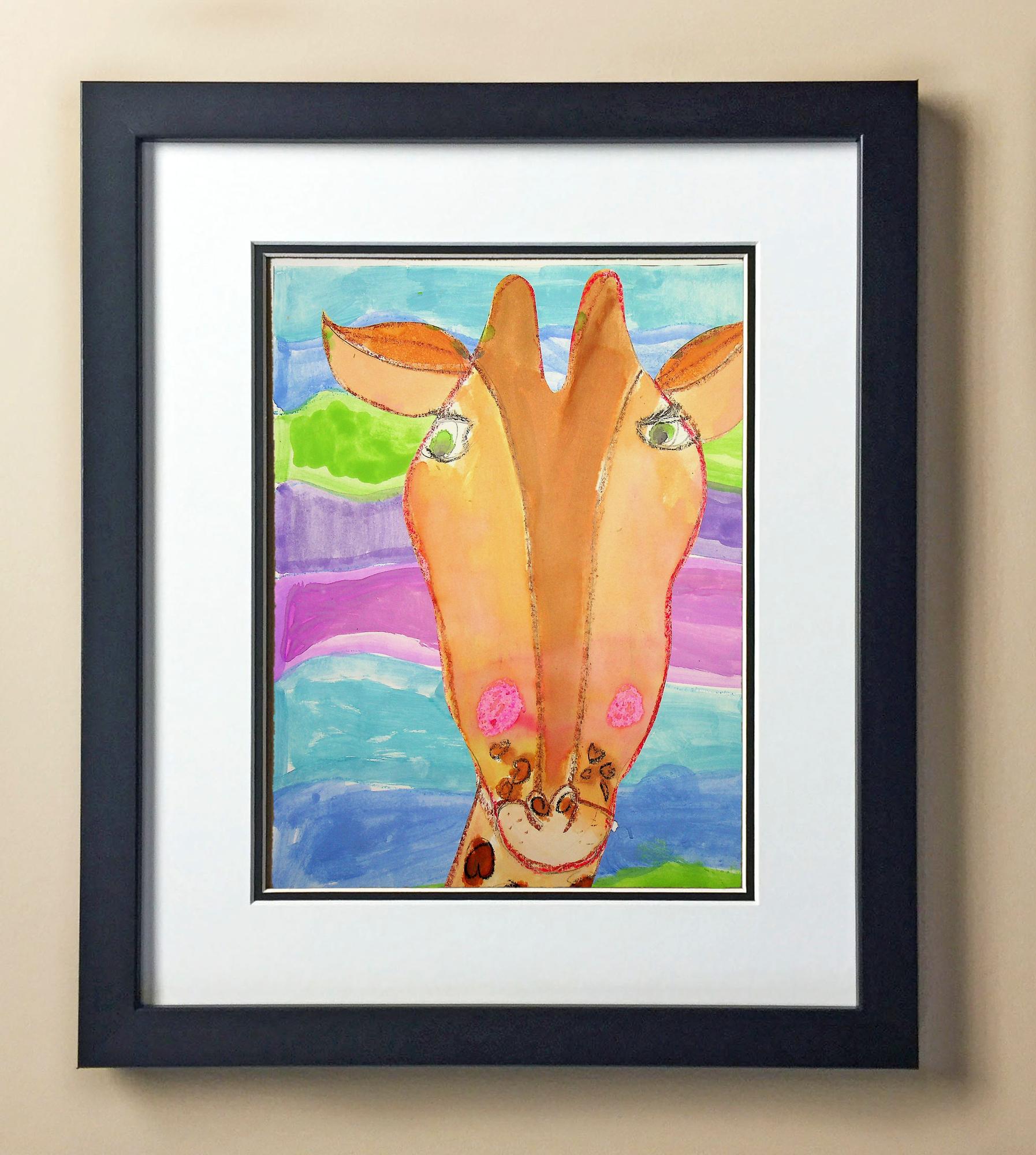 Included with the purchase is the Students Artwork, Frame, double matboard, shatter proof plexiglass, and a ready to hang backerboard with turnbuttons